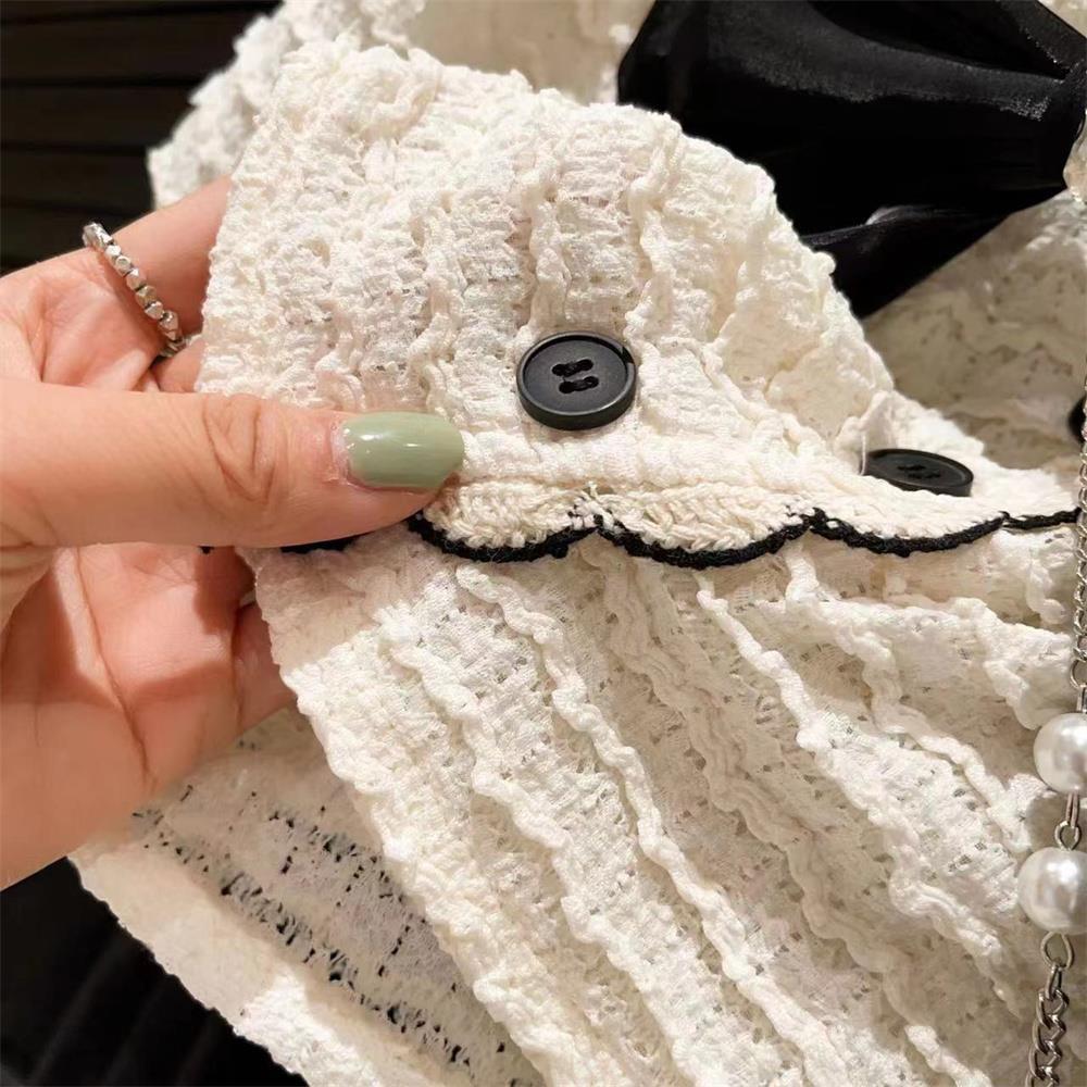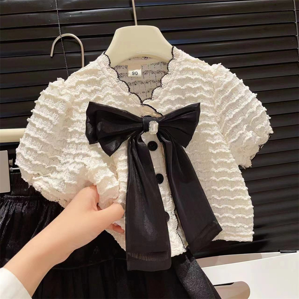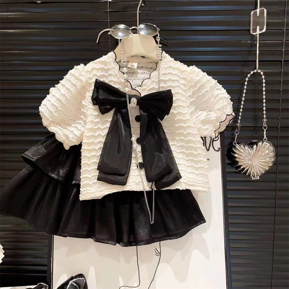 新品女童气质小香泡泡短袖蝴蝶机上衣短裙两件套2025夏装套装