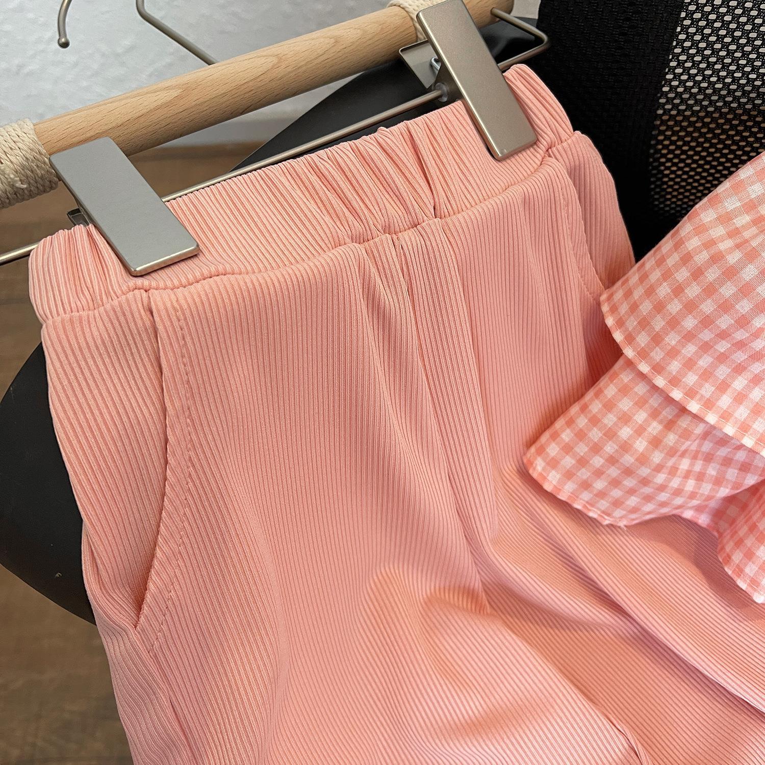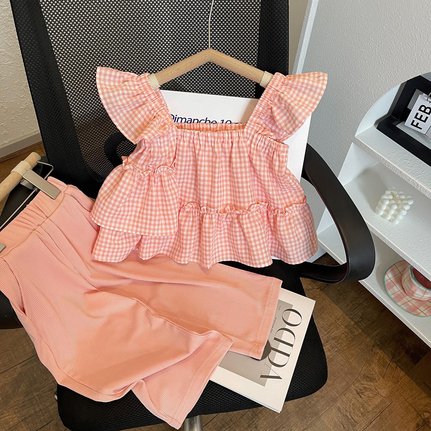 2025夏季新款女童格子吊带裤子两件套韩版宽松清爽套装
