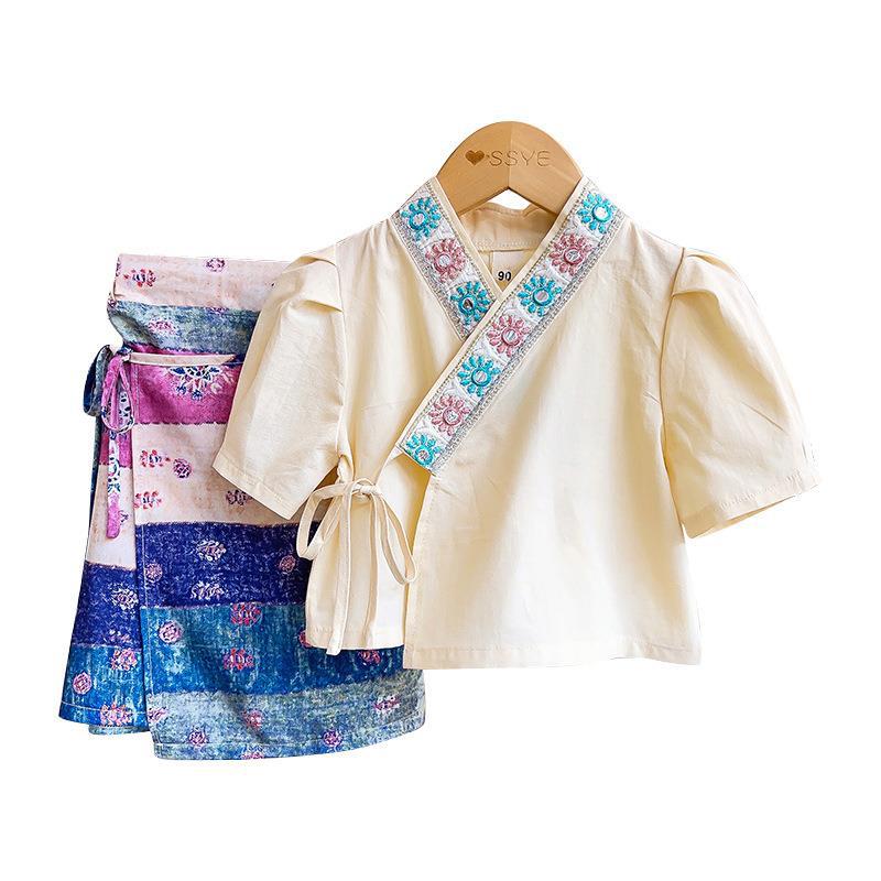 女童夏款民族风套装洋气复古中式风傣族公主国风两件套新品