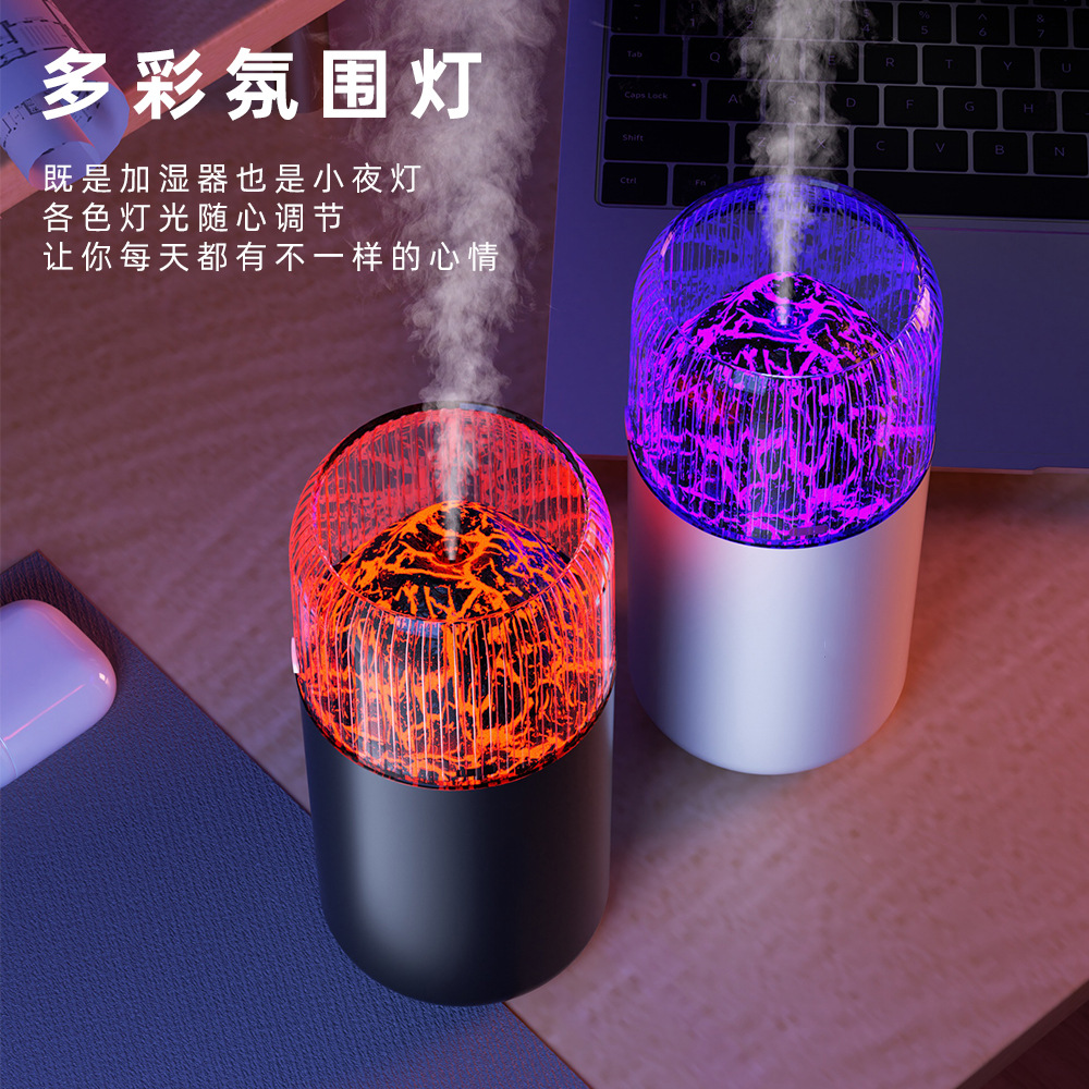 新款星球火山加湿器家用办公雾化器卧室七彩氛围灯火焰灯加湿器