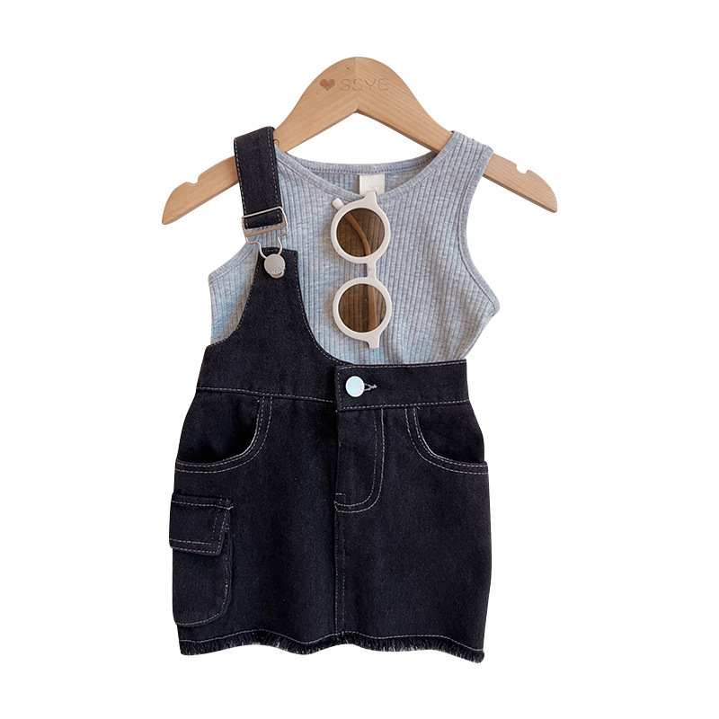 女童2025夏季新款女宝宝短袖背心牛仔半身裙两件套中小童套装童装