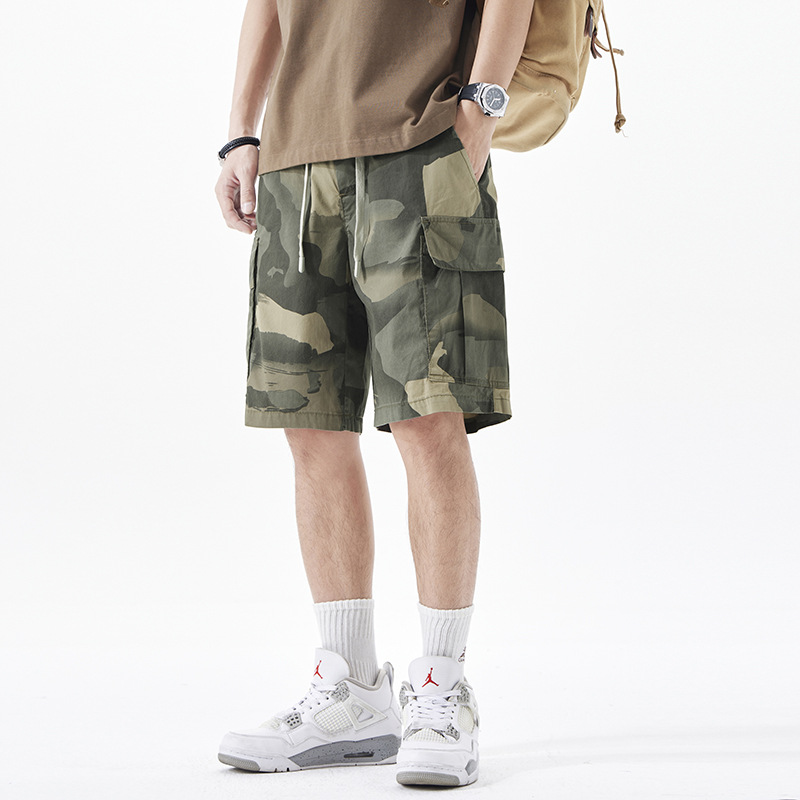 夏季薄款迷彩工装短裤男宽松潮牌ins五分休闲裤大码胖子马裤中裤