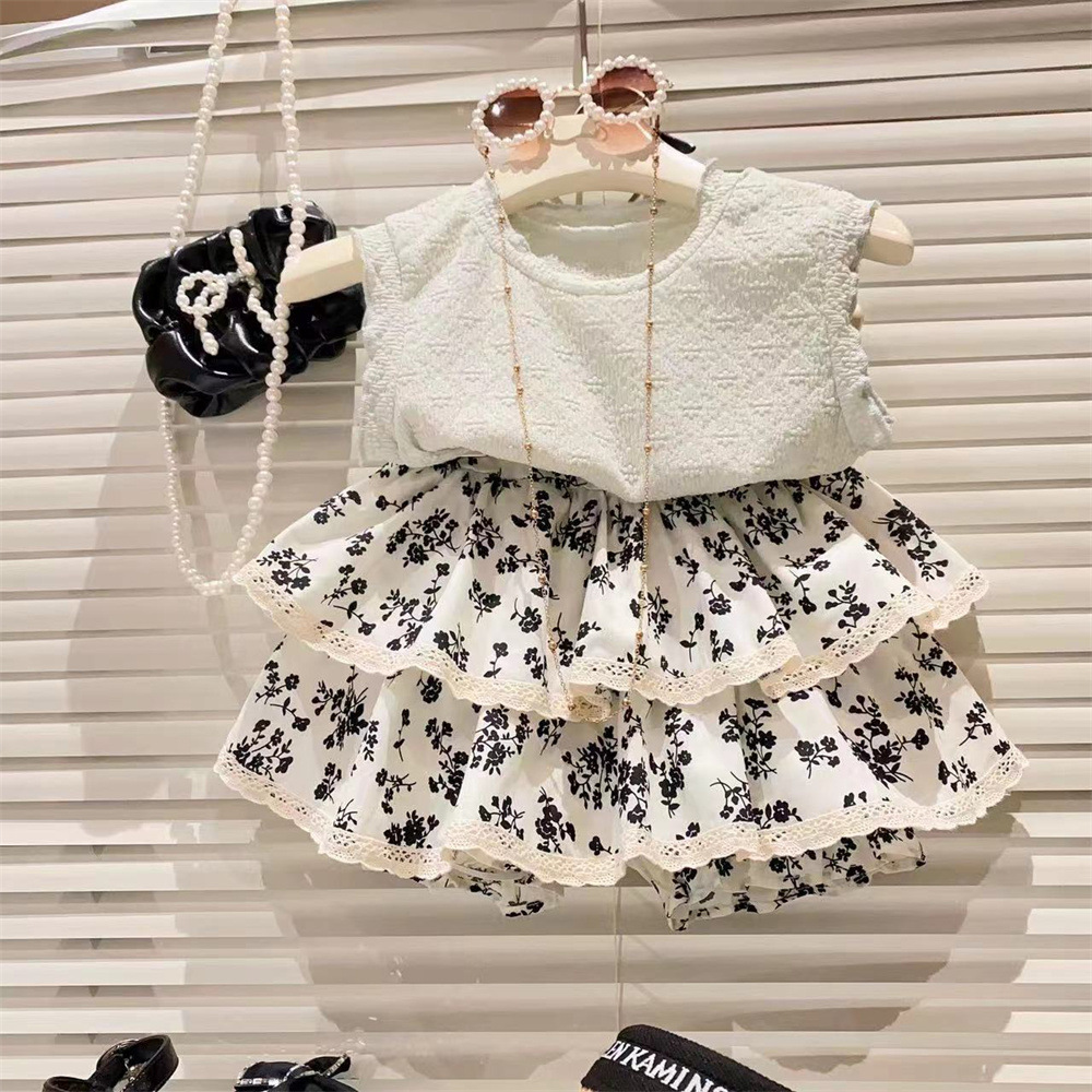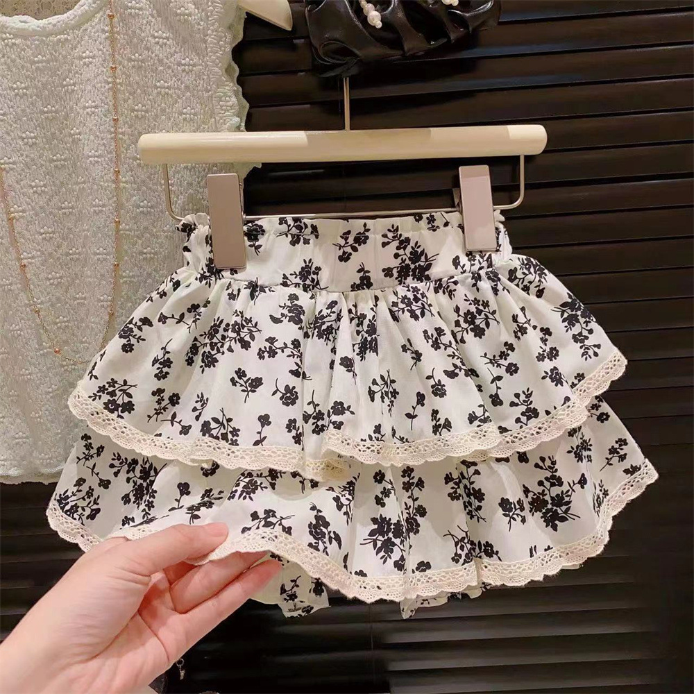 新品女童碎花蕾丝包边百搭气质洋气半身蛋糕裙裤2025夏装中小裙子