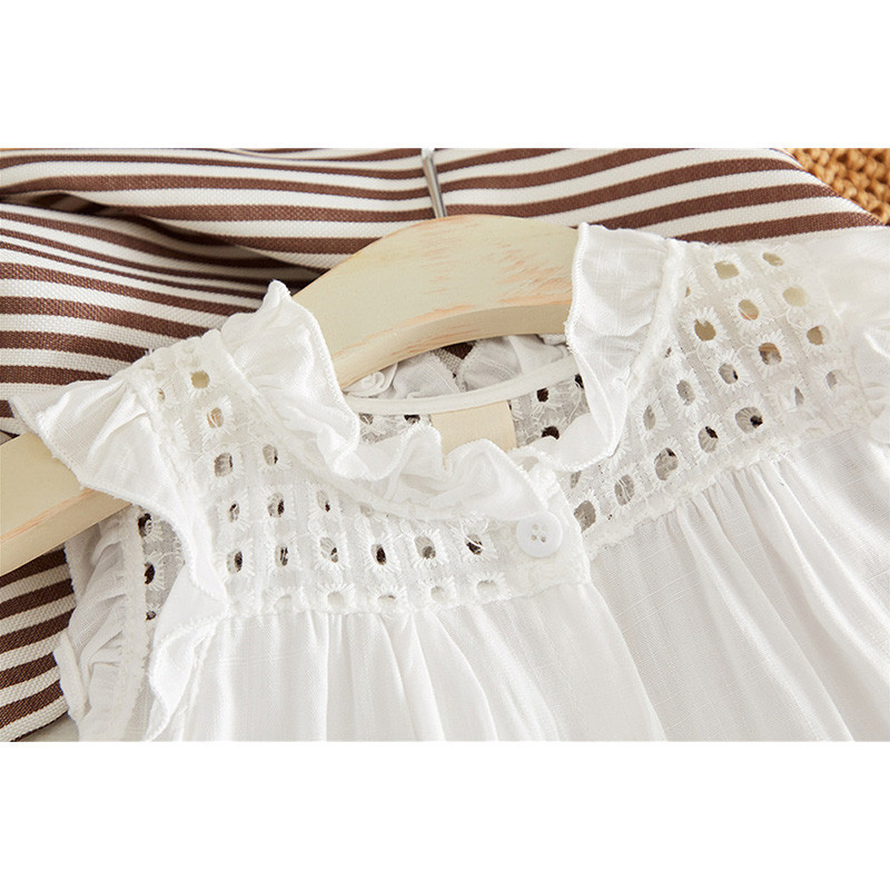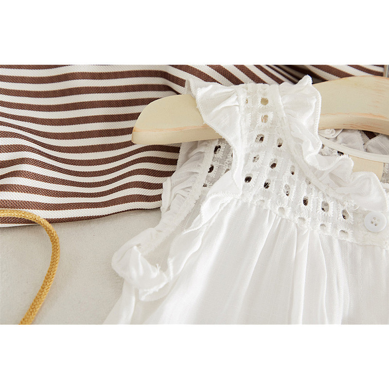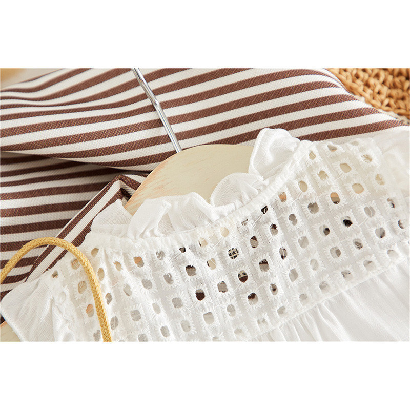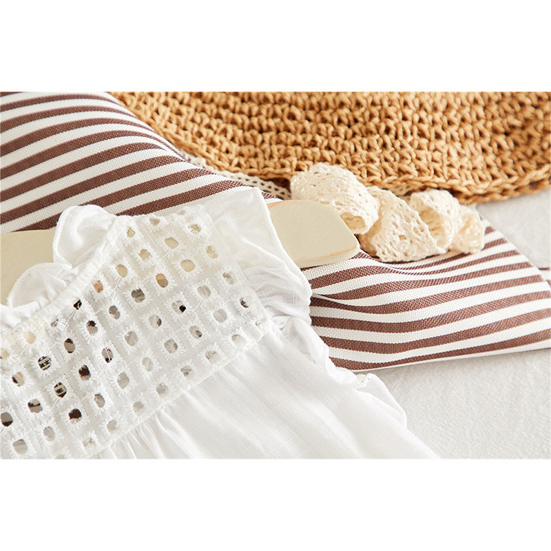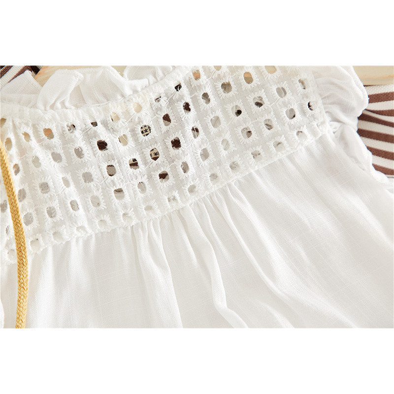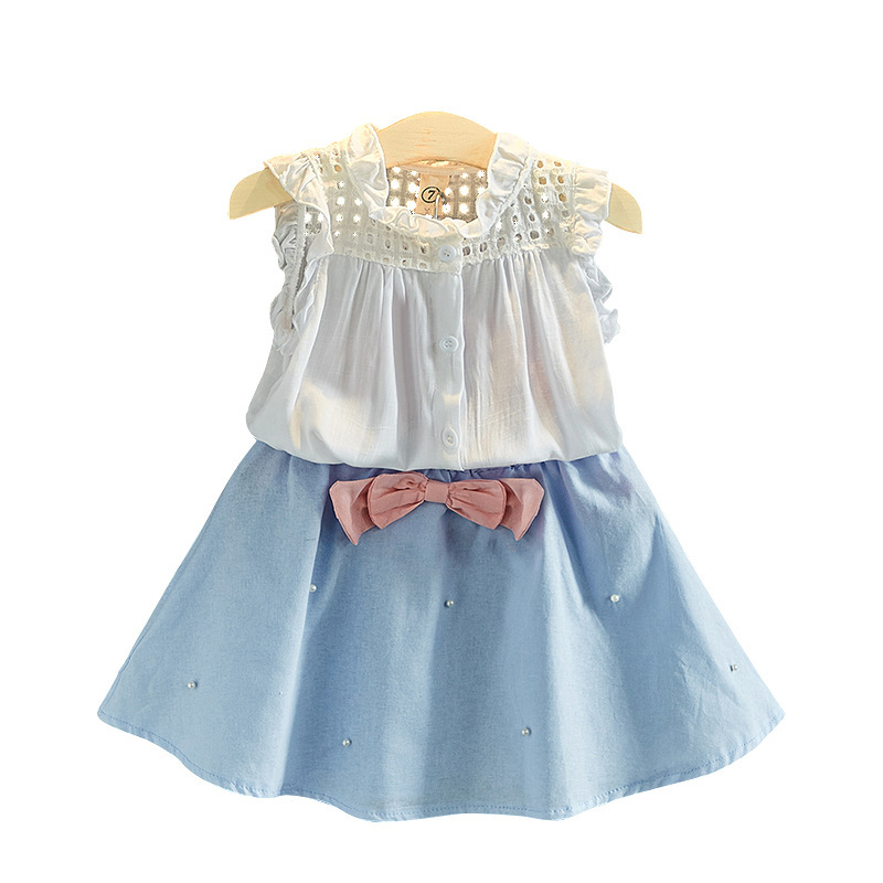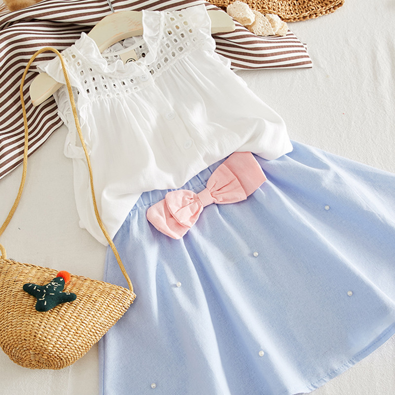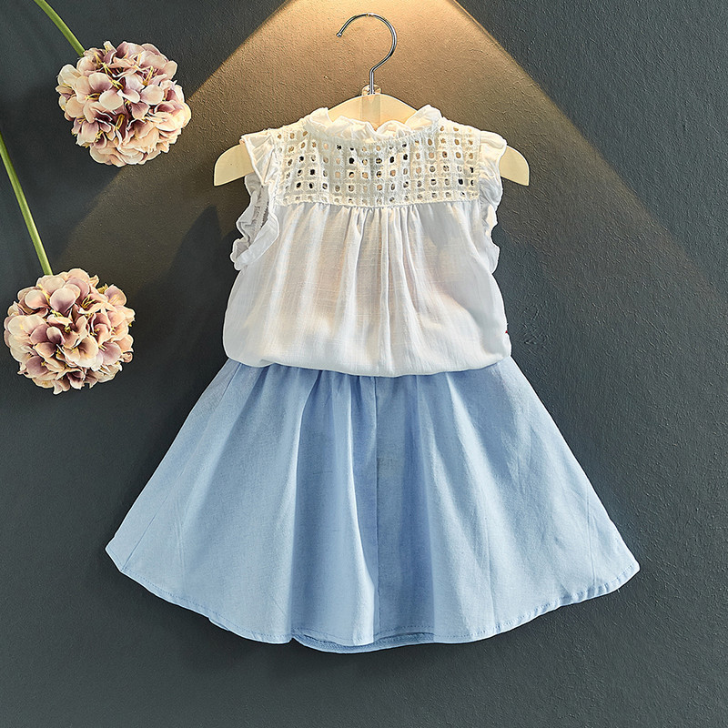 外贸女童套裙2025夏季淑女无袖洞洞衬衫+短裙两件套套装中小童新