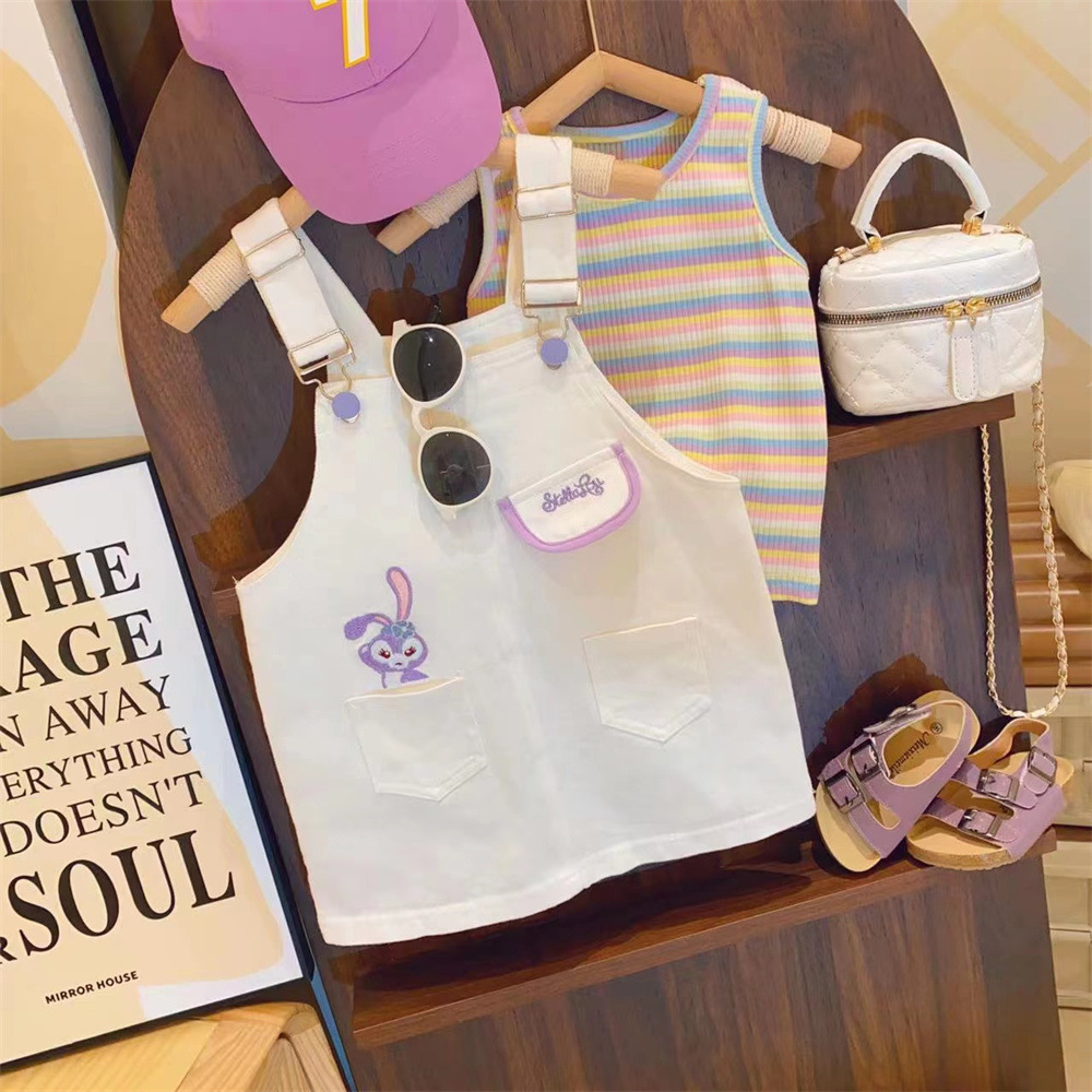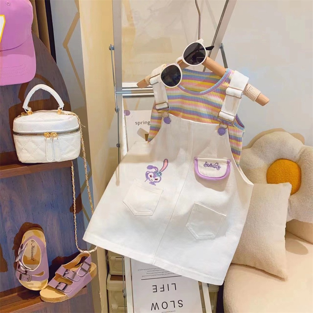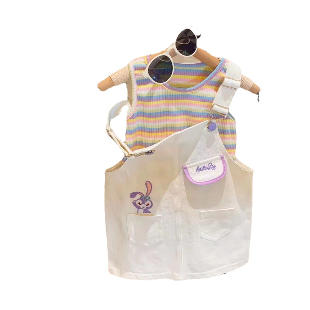 新品女童套装卡通星黛露背带裙条纹高弹打底衫两件套2025夏装外贸