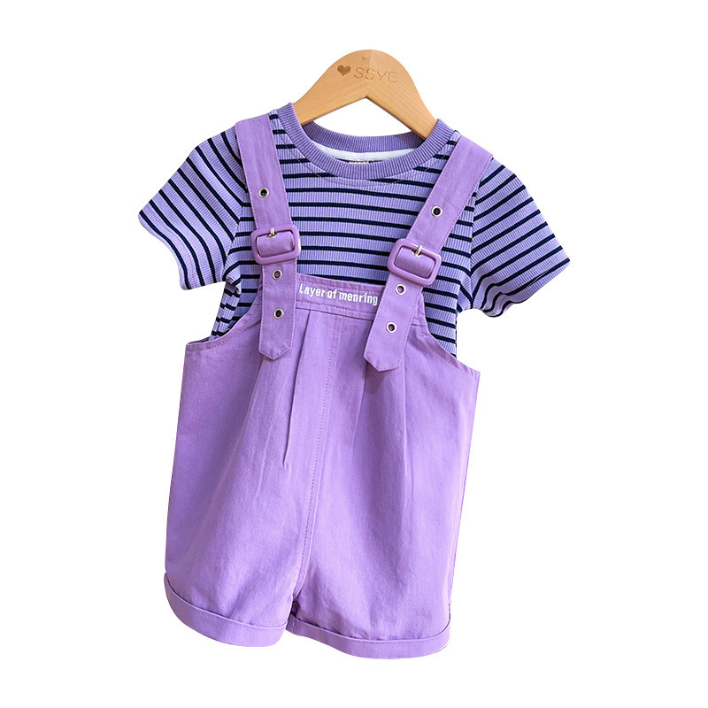 女童条纹背带裤套装2025夏季新款儿童休闲洋气时尚女孩童装