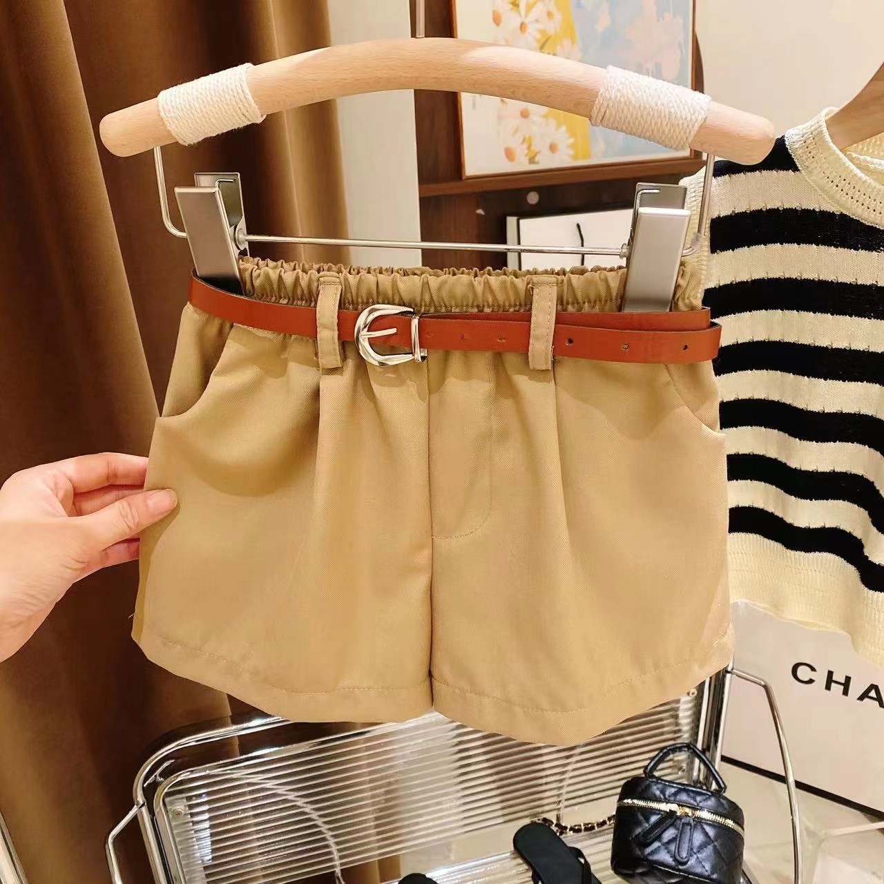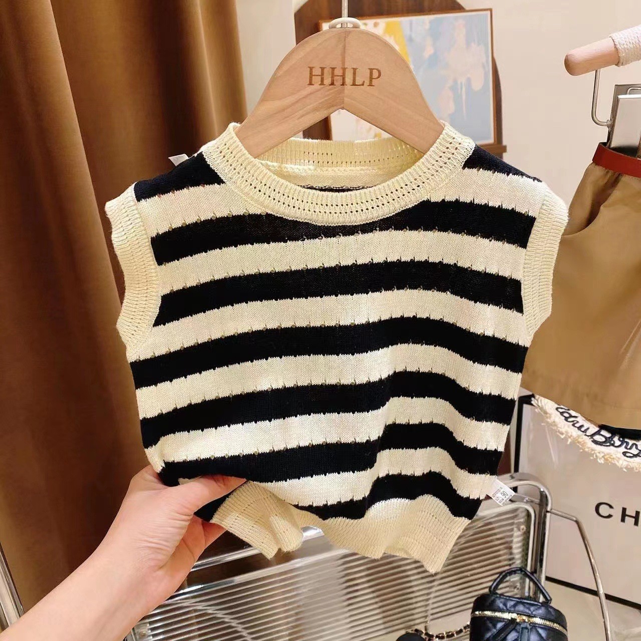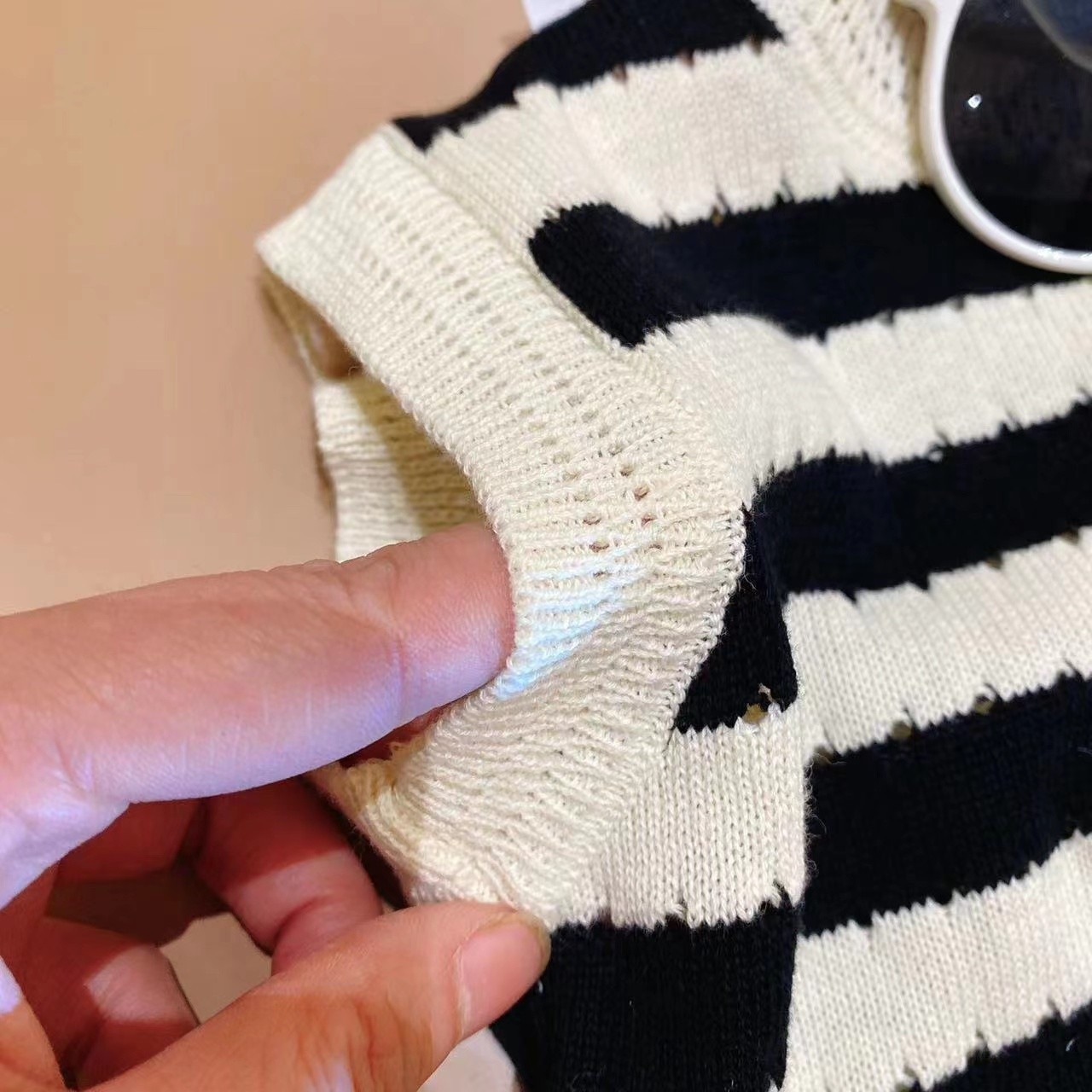 新品女童套装针织包边条纹弹力背心英伦风短裤两件套2025夏装