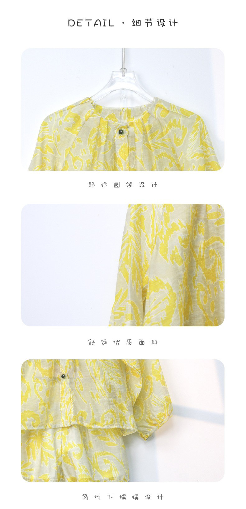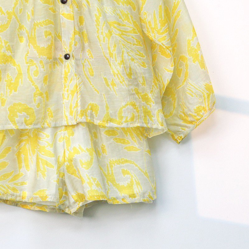 新品女童复古碎花防晒衬衣2025夏季新款长袖短裤套装两件套