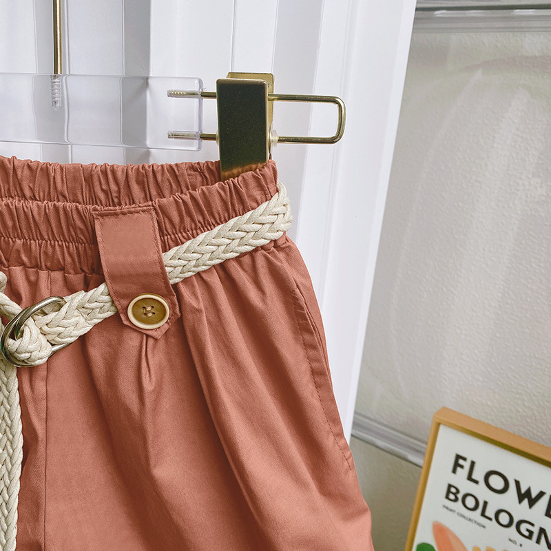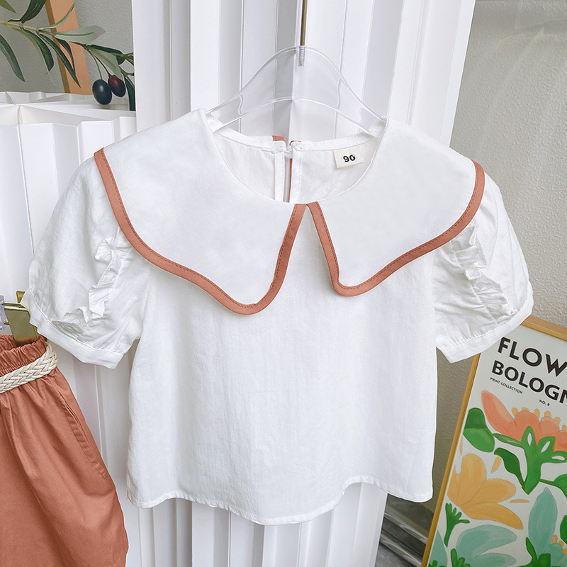 外贸 女童套装2025夏装女宝宝娃娃领上衣+短裤两件套新款