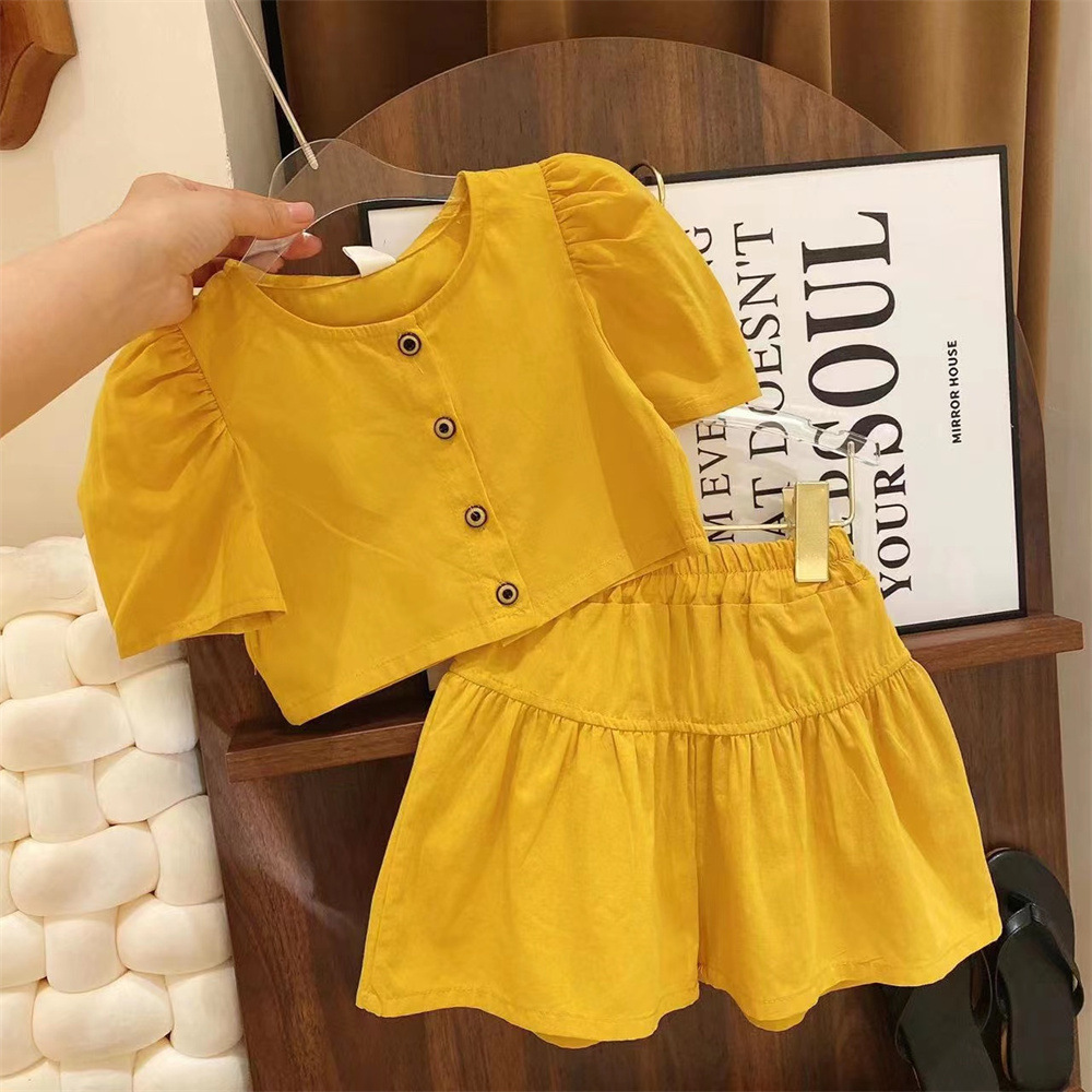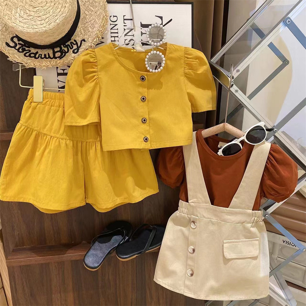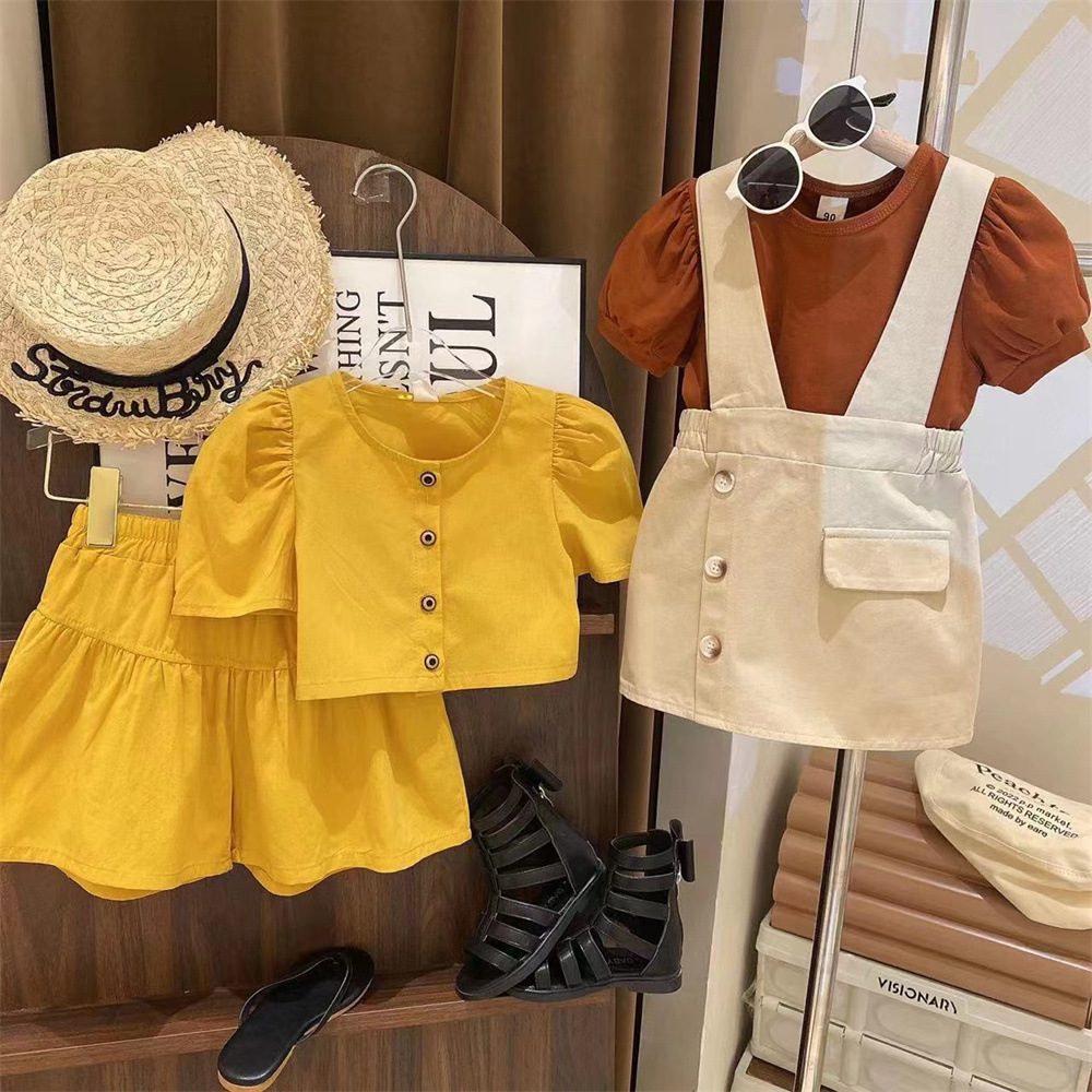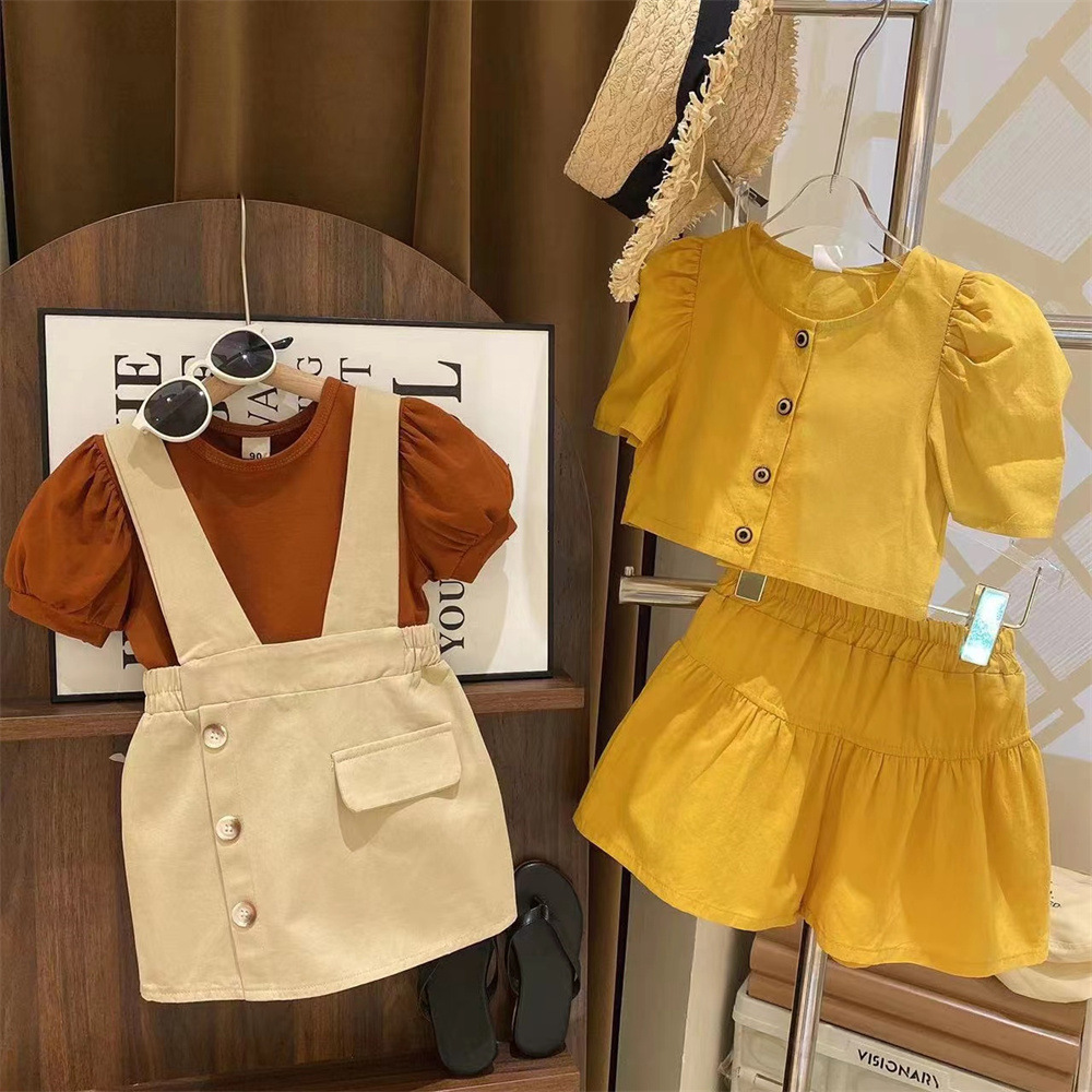 新品清凉一夏女童双版本泡泡袖打底衫短裙两件套2025夏装套装潮