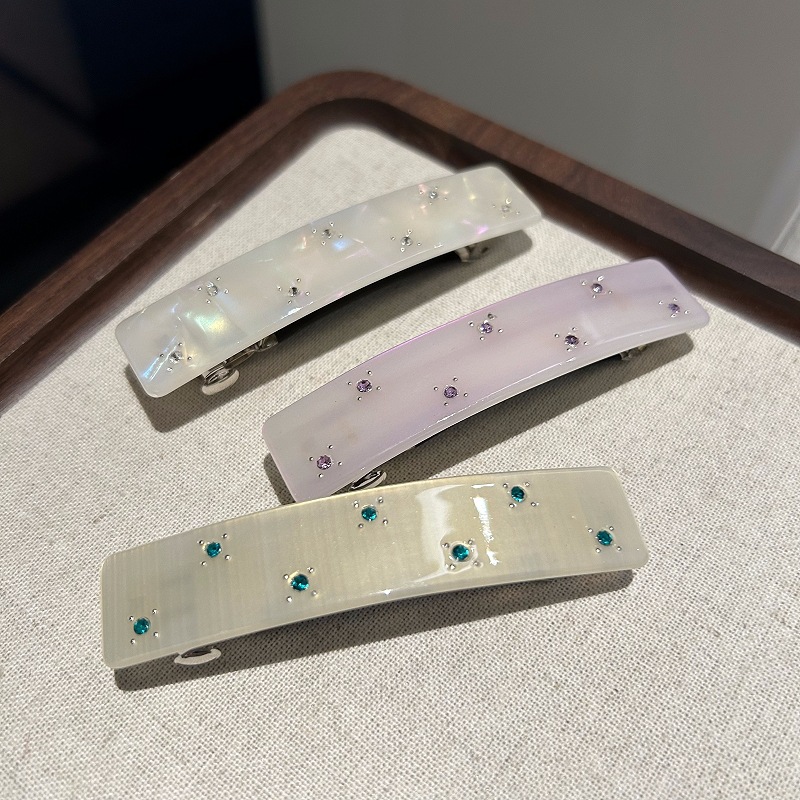 韩版醋酸彩钻发夹满天星小钻长条发夹弹簧夹边夹半夹法式马尾夹