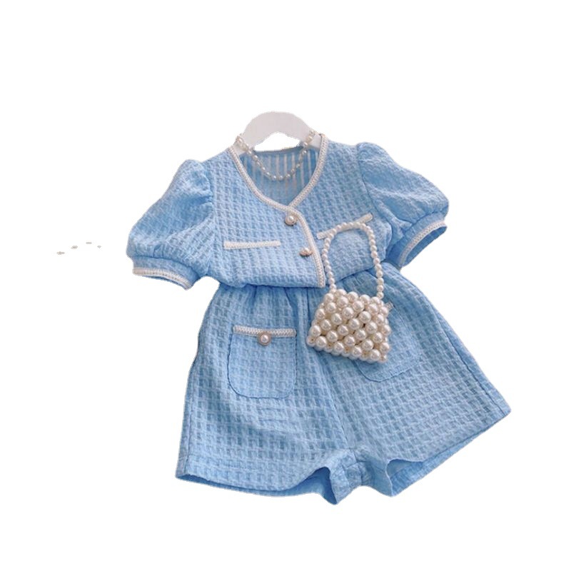 小香风套装女2025夏季新款韩版女童高腰阔腿短裤时尚两件套名媛风