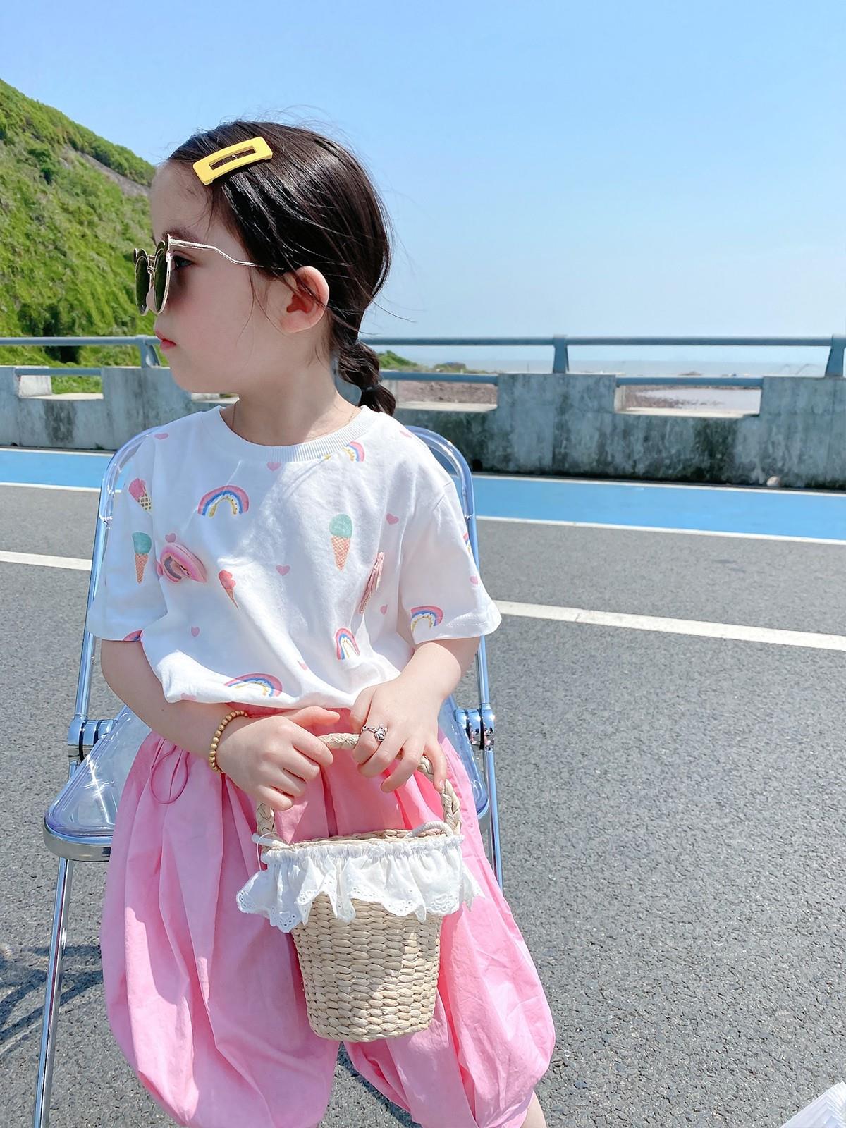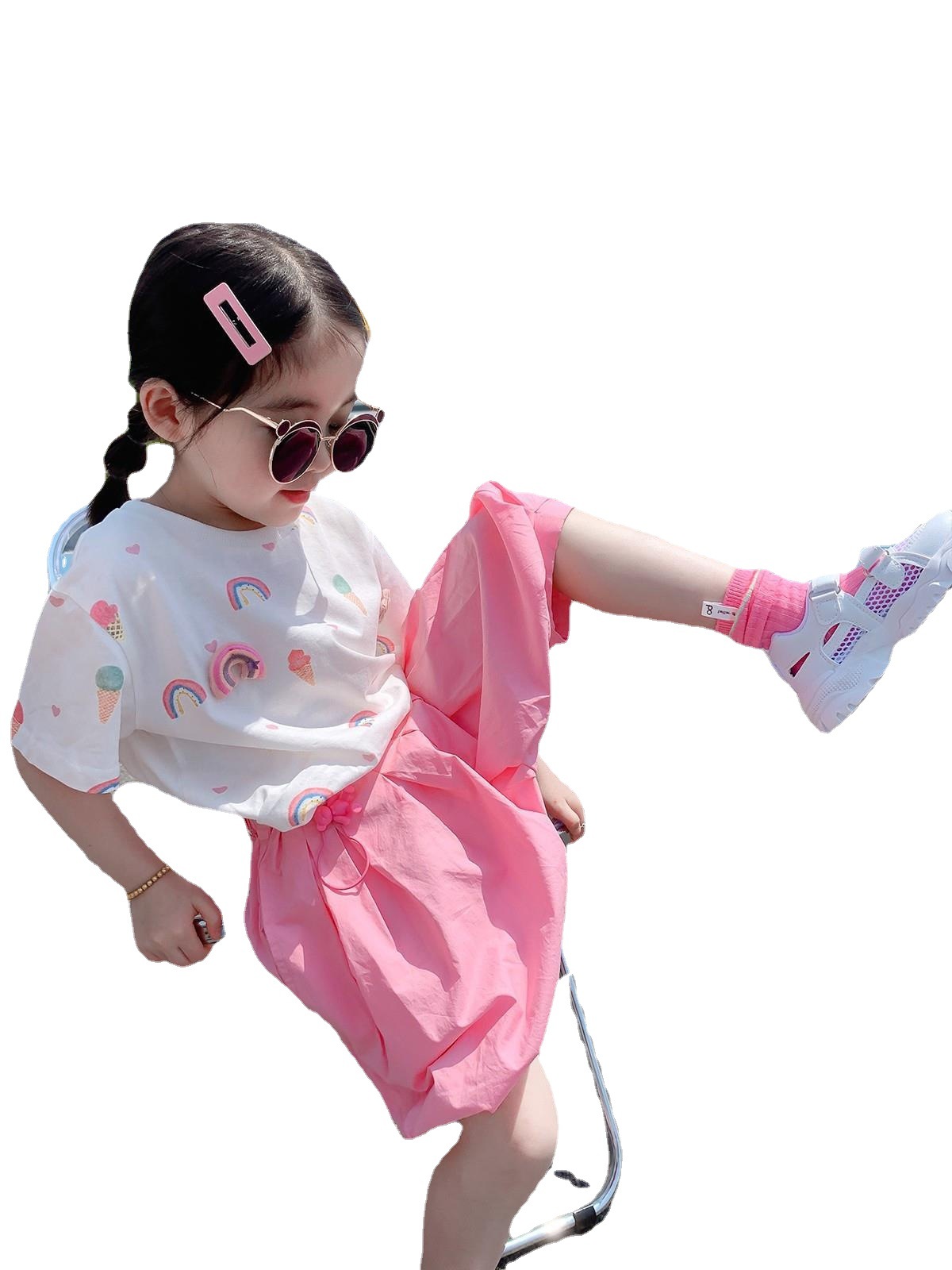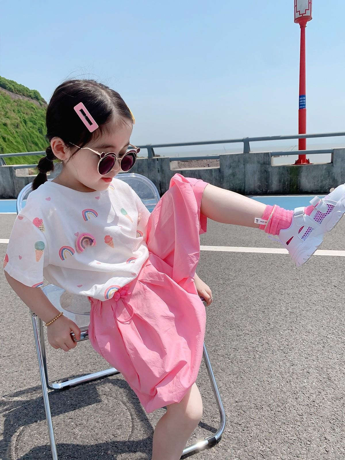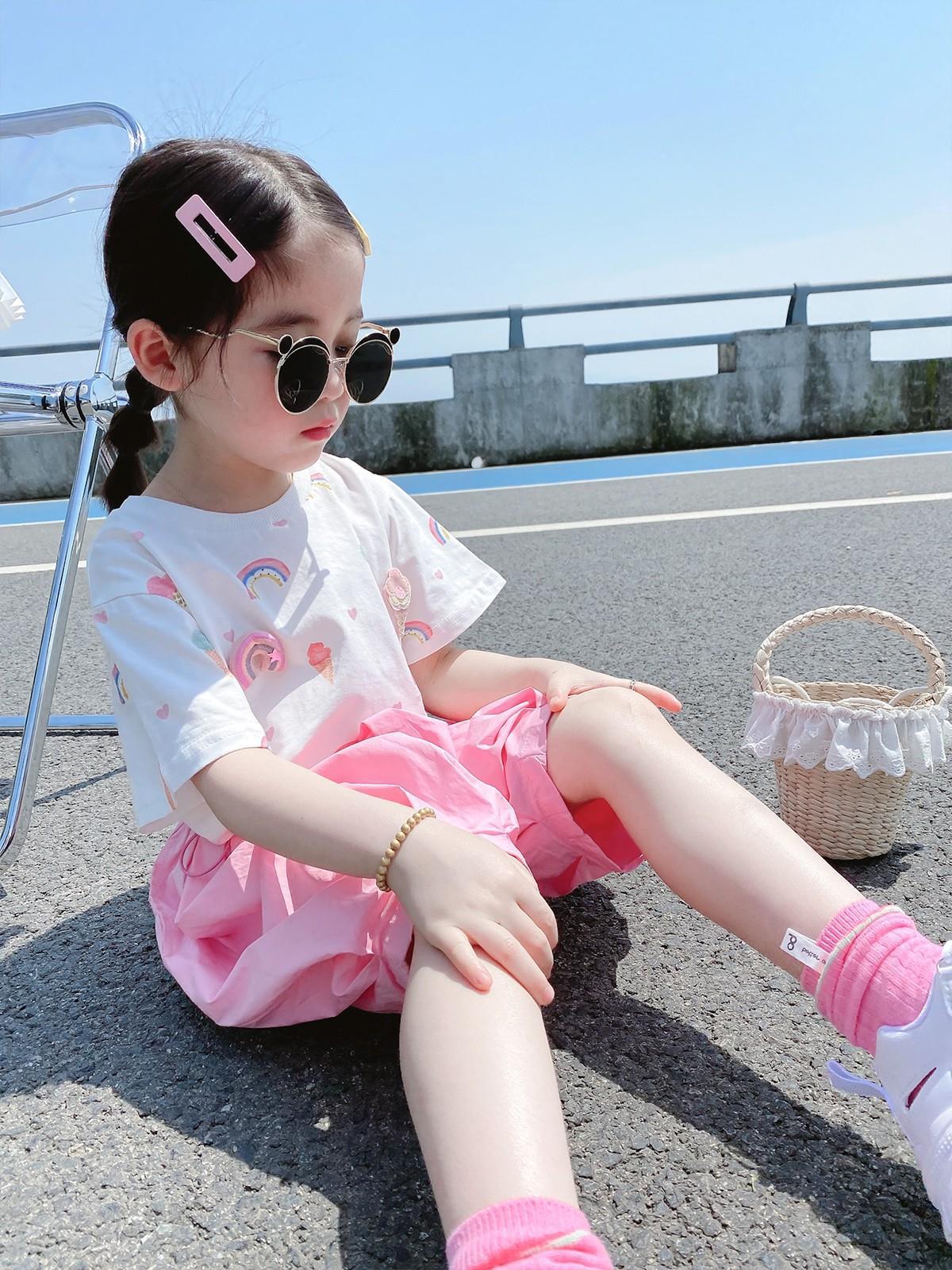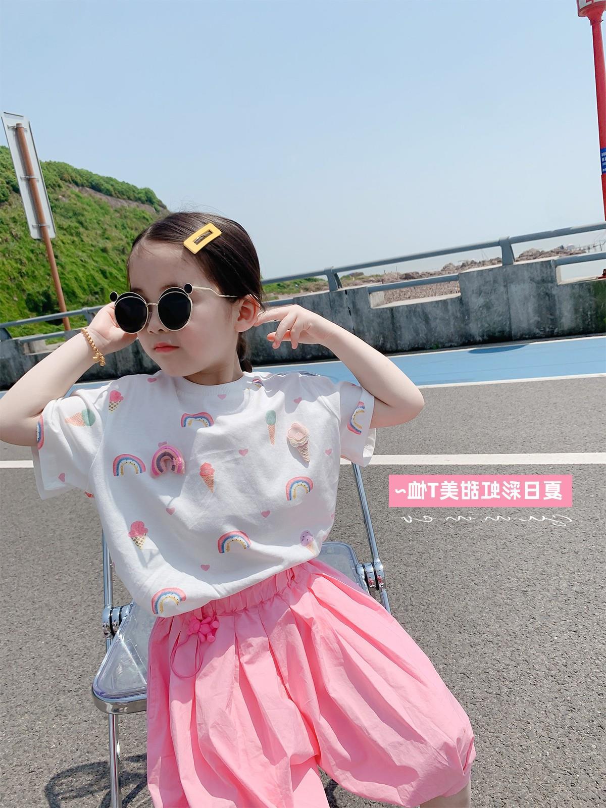 女童T恤宝宝夏季韩版儿童洋气薄款短袖t网红卡通小女孩夏装两件套