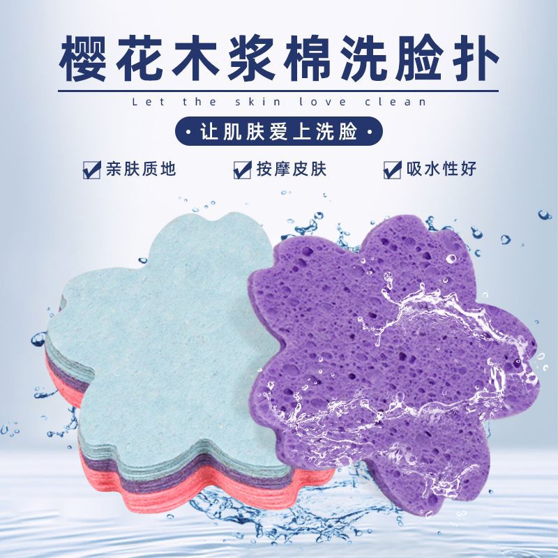压缩木浆棉洗脸扑樱花形美容洗脸海绵可降解清洁洗脸海绵