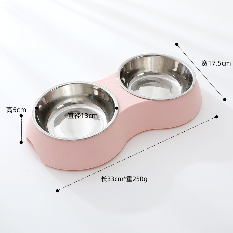 皮皮淘马卡龙色牛皮纹理宠物双碗 INS风椭圆形简约宠物碗