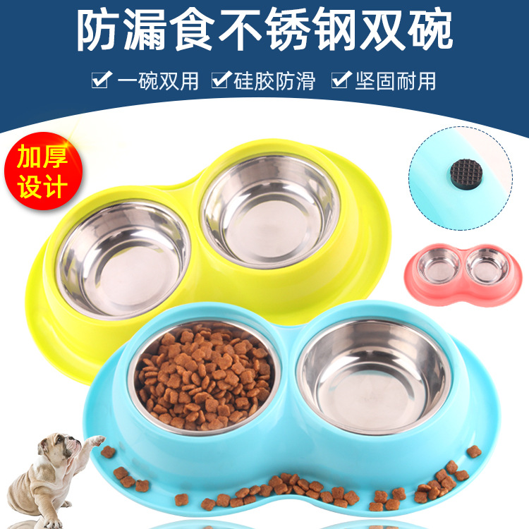 宠物狗碗双碗狗不锈钢碗泰迪防蚁防虫吃饭猫食盆不锈钢碗狗狗食具