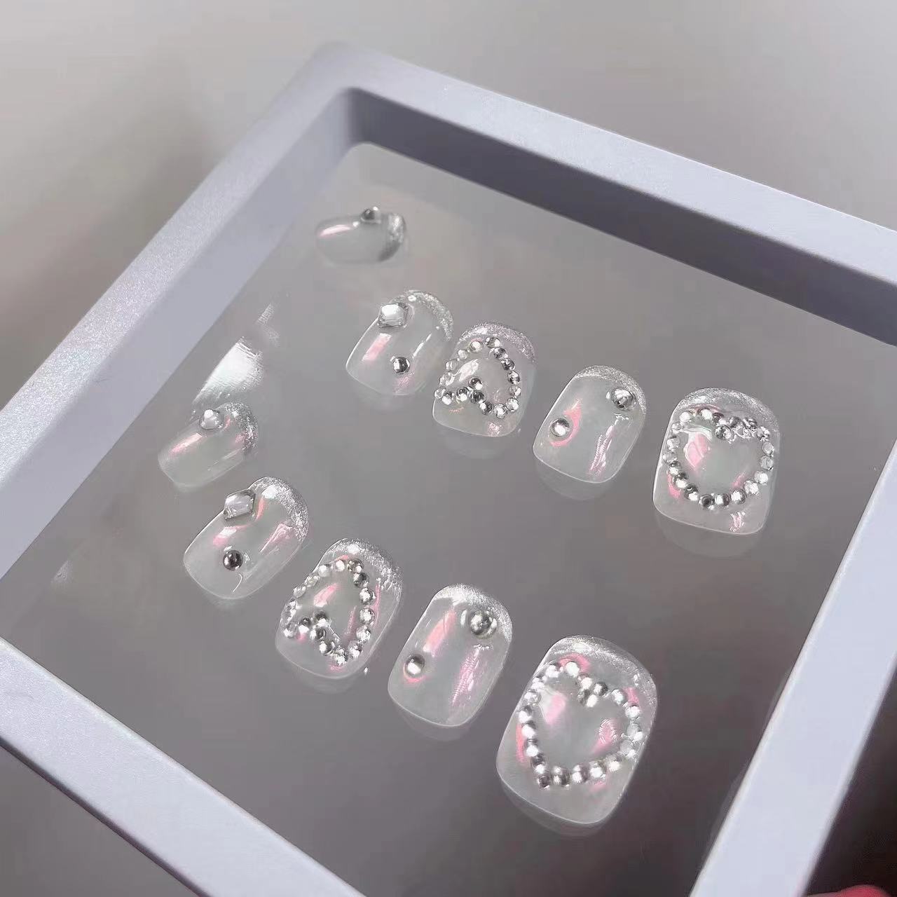 魔镜粉爱心贴钻美甲G210