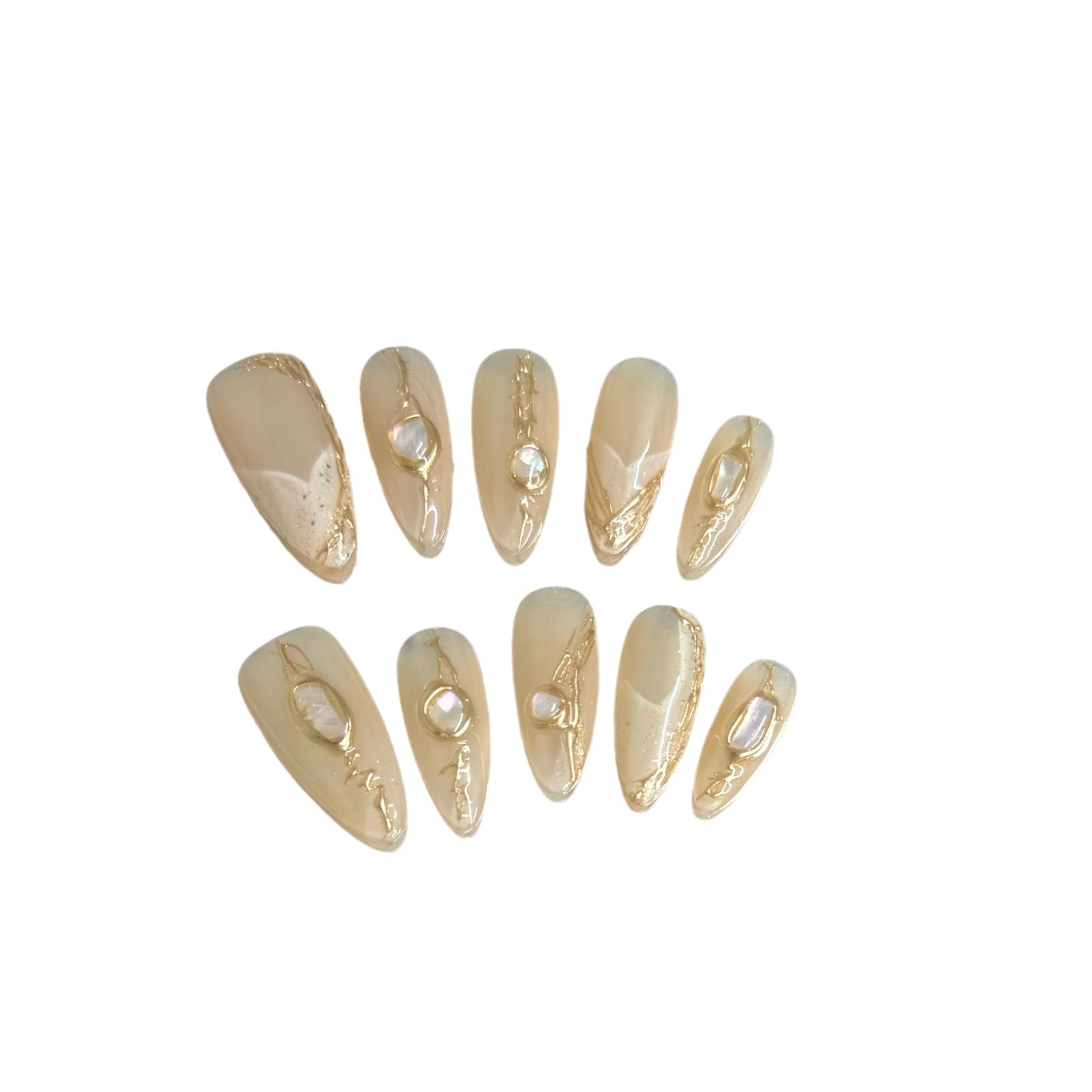 手工穿戴甲落日余晖气质显白温柔描金气质纯欲可拆卸手绘细闪美甲