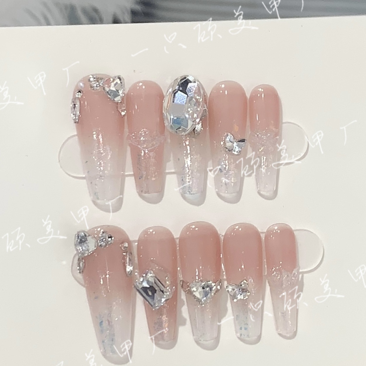 一只顾美甲厂【Y】手工光疗渐变穿戴甲欧泊碎石K9钻水光纱