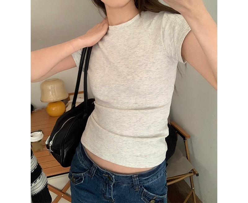 正肩短袖圆领t恤女夏季新款修身显瘦设计感小众内搭洋气休闲上衣
