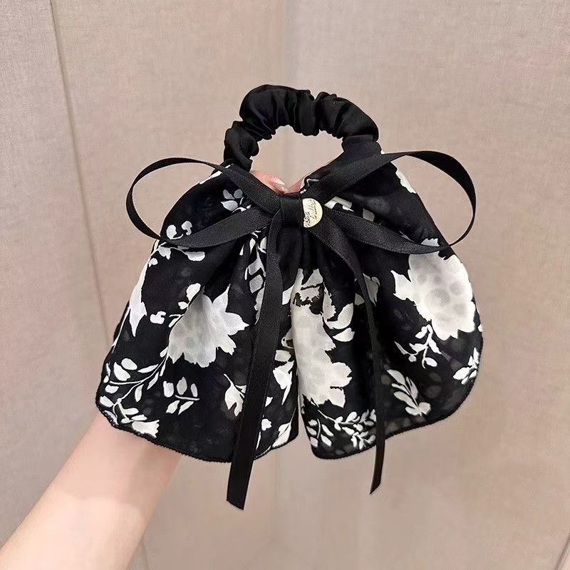 新复古印花蝴蝶结水墨裙摆发圈头绳女高级感温柔优雅发绳飘带