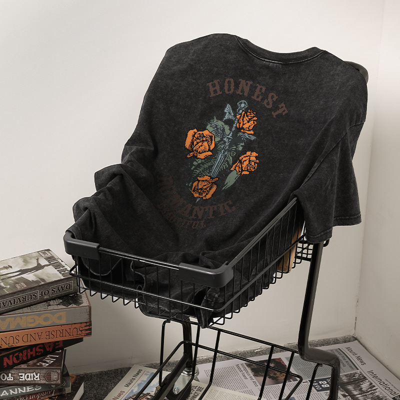 重磅纯棉短袖t恤女国潮ins圆领宽松美式复古春夏季oversize上衣服