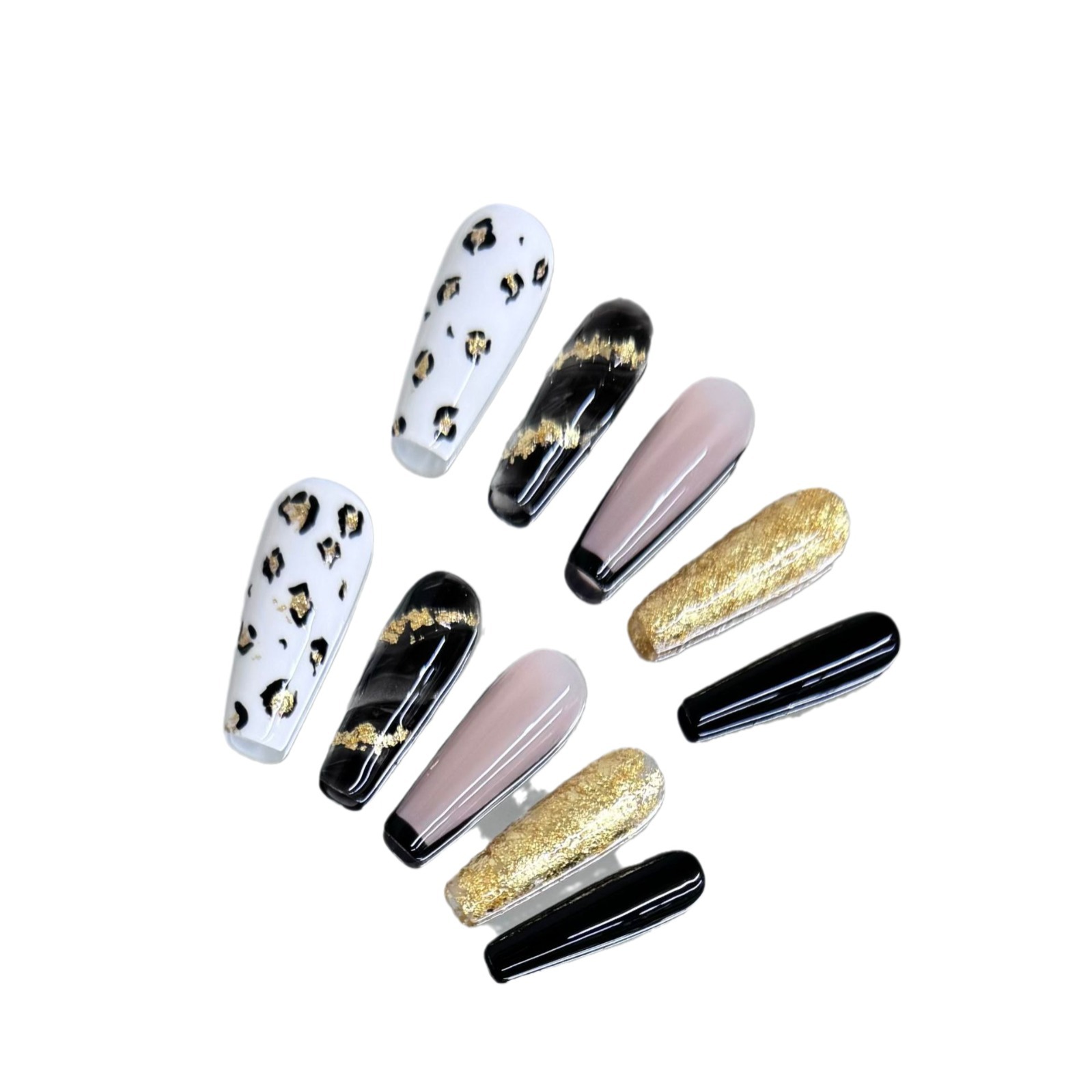 手工穿戴甲闪耀黑金大气欧美长款爆闪豹纹轻奢高级感可拆卸穿戴甲