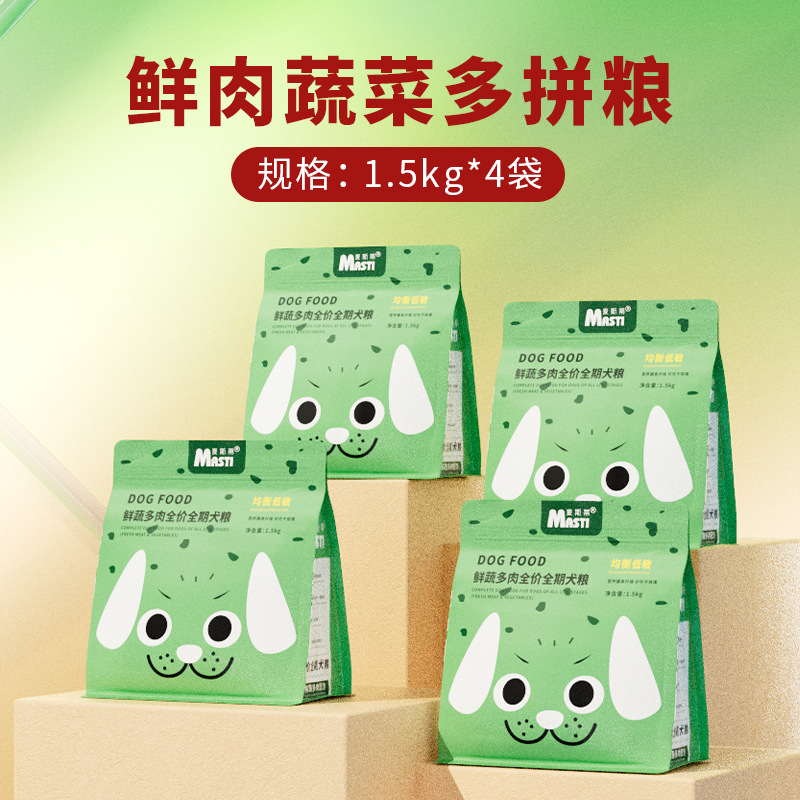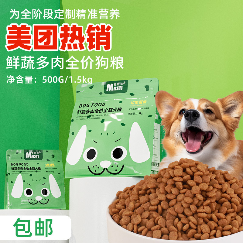 麦斯蒂狗粮500g/1.5kg蔬菜多肉成幼犬全价通用型狗粮