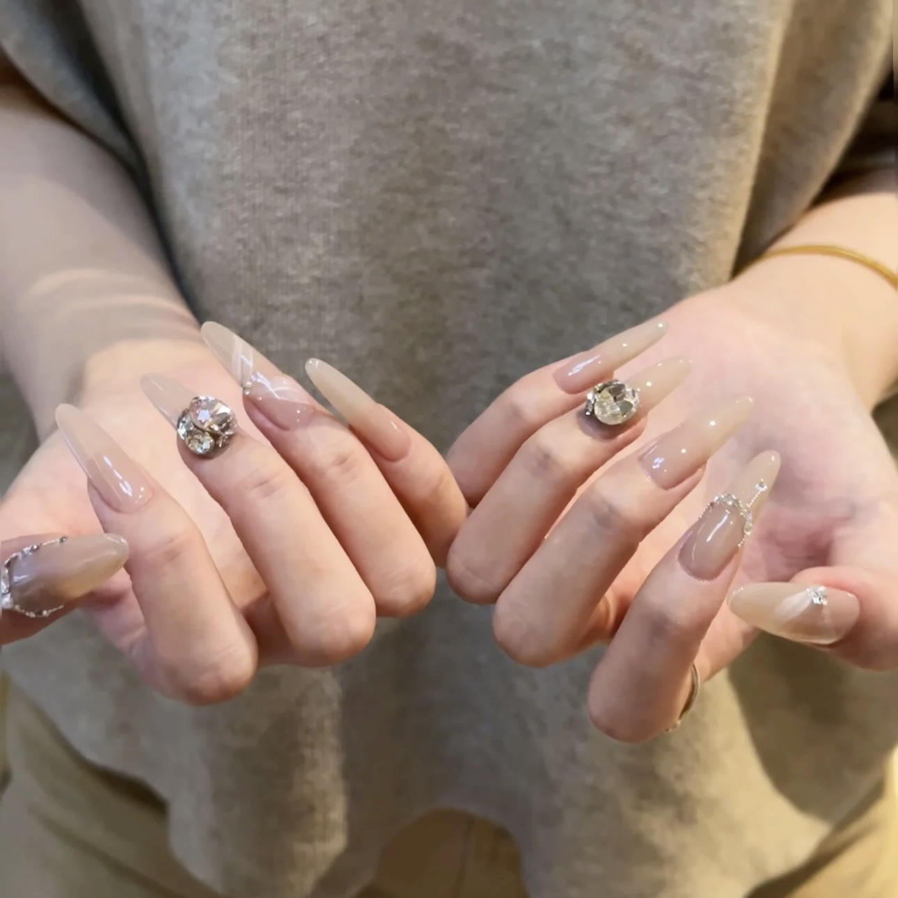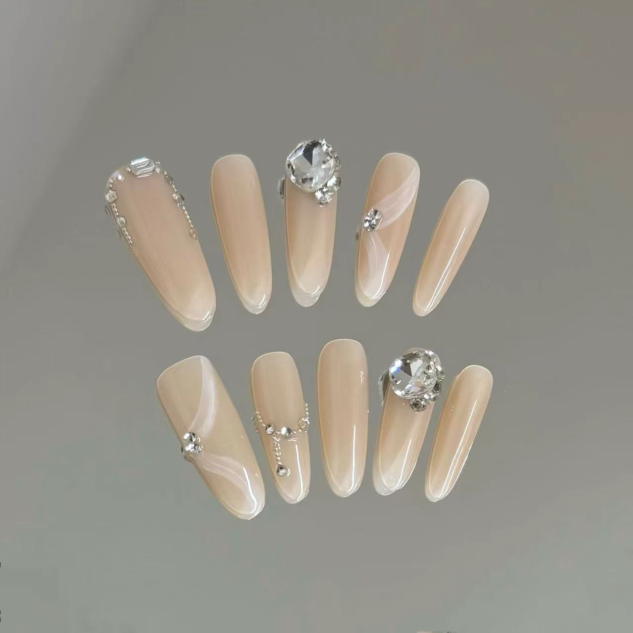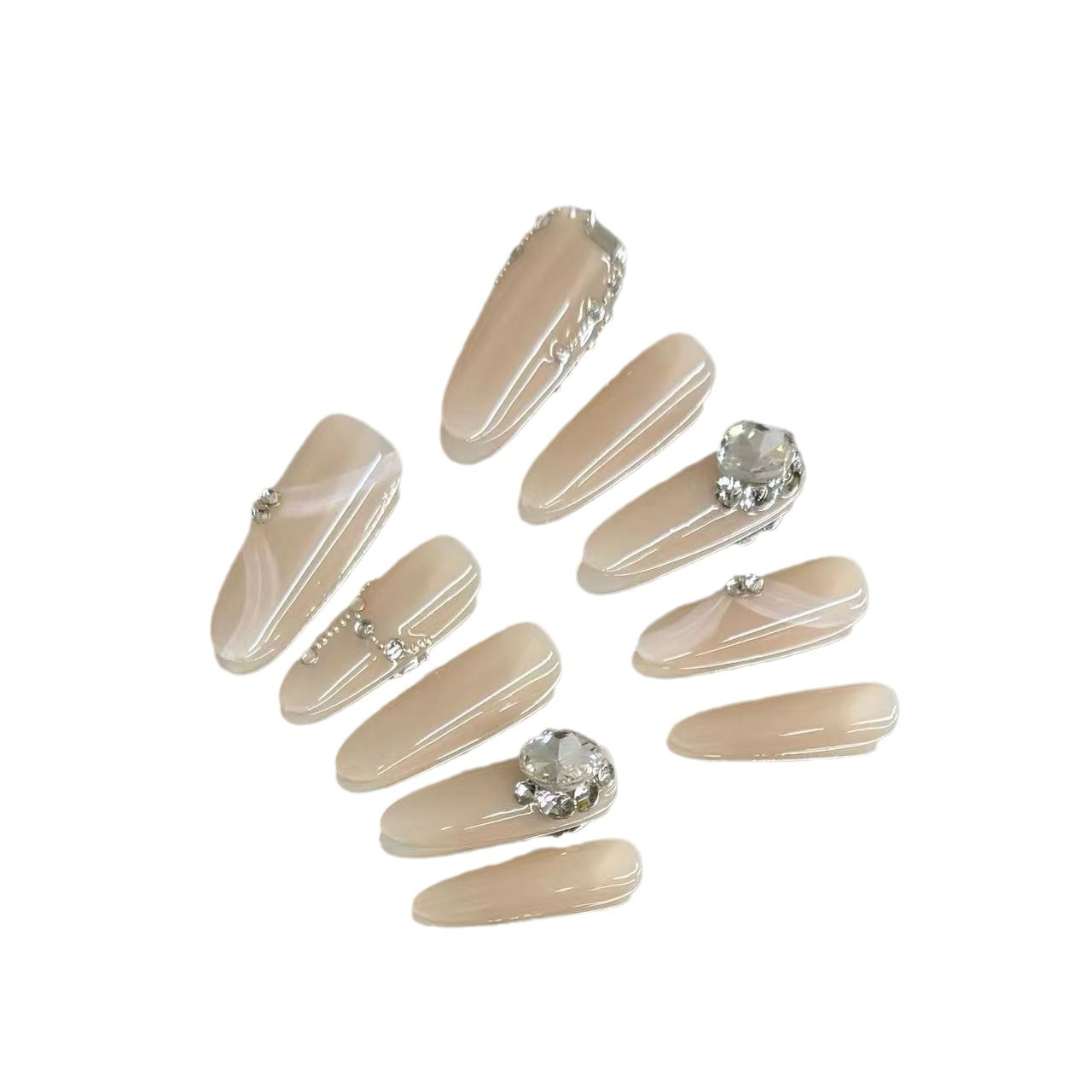 纯手工穿戴甲轻奢闪钻温柔气质细闪丝带飘逸高级感美甲贴片成品