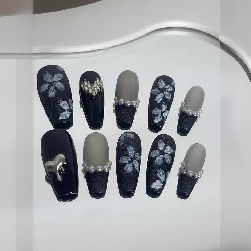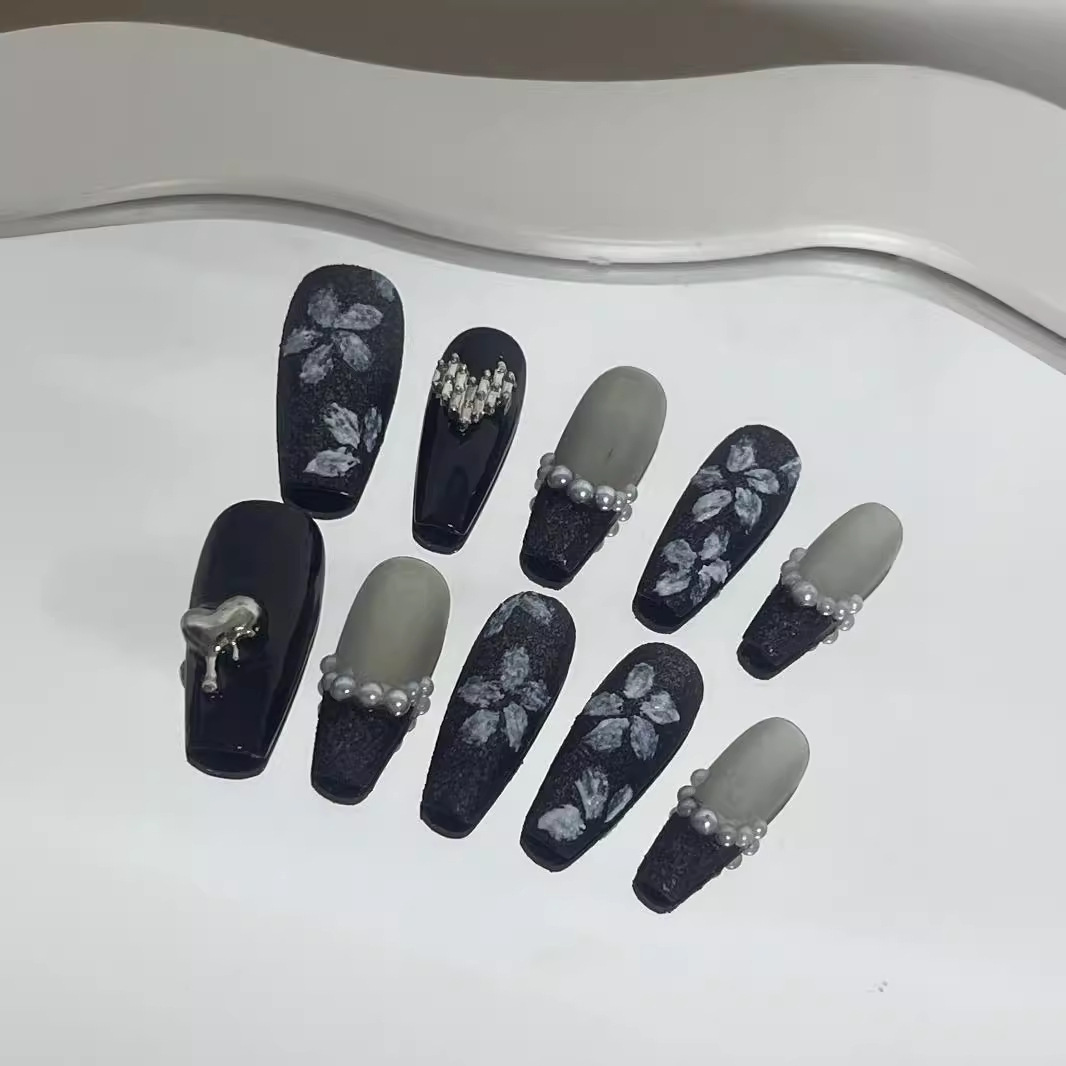 小红书同款纯手工穿戴甲小香风珍珠石膏高级感显白美甲贴片可拆卸