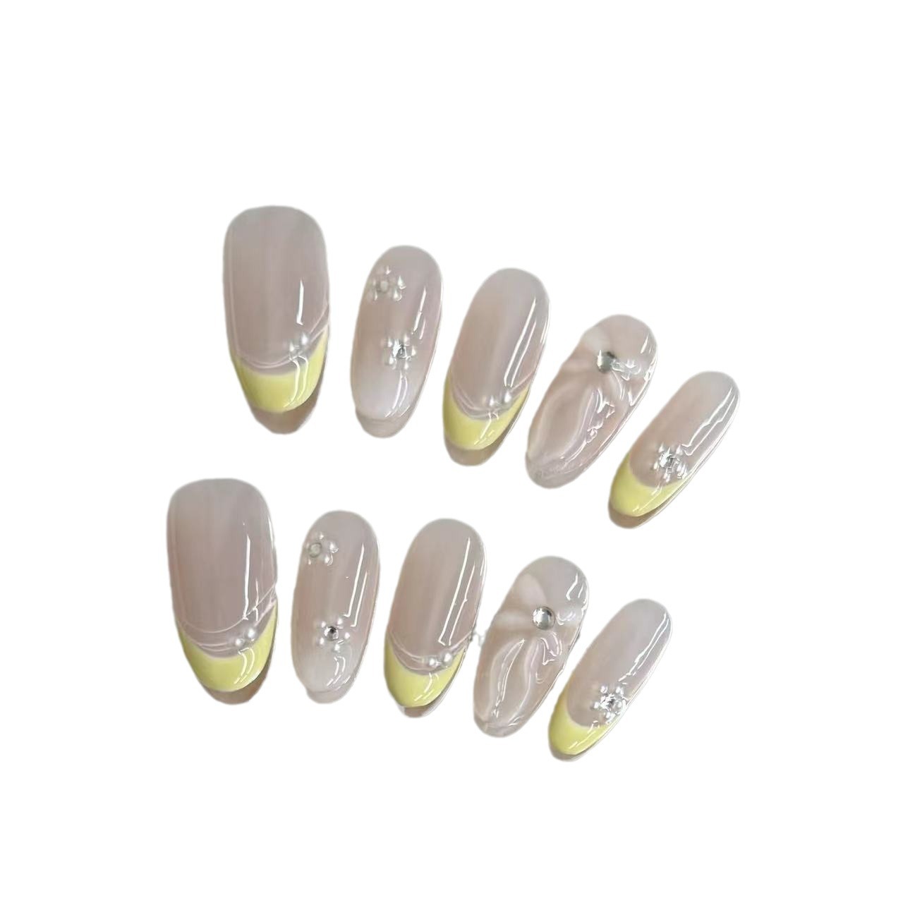 纯手工穿戴甲法式极简蝴蝶闪钻透亮温柔简约大气气质美甲穿戴成品