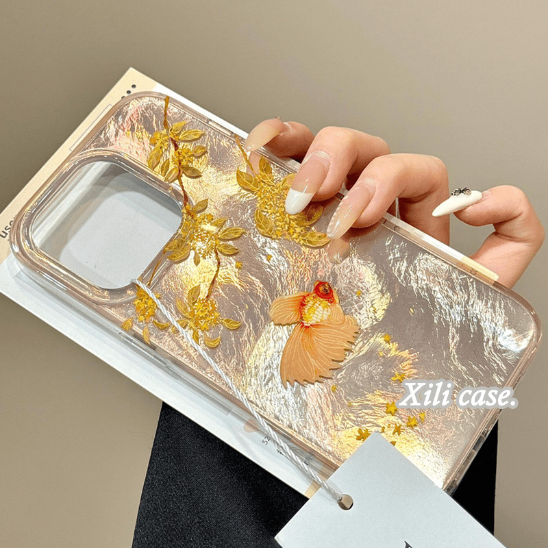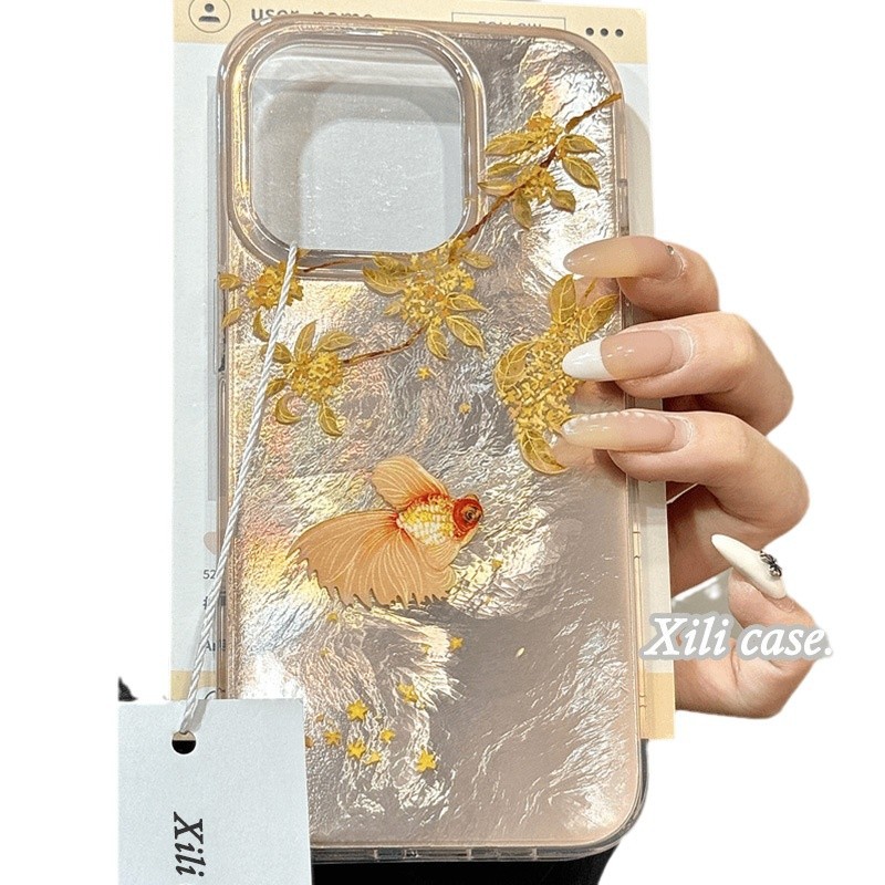 国潮秋日落叶金鱼适用苹果16promax手机壳iPhone15pro新款14/13女