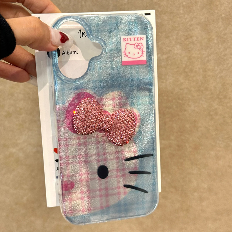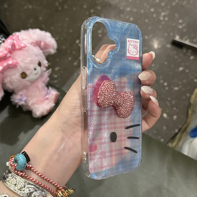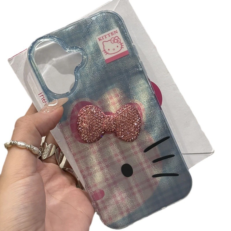 哈喽KT猫立体粉蝴蝶结适用ihone16promax苹果15pro手机壳14新款13