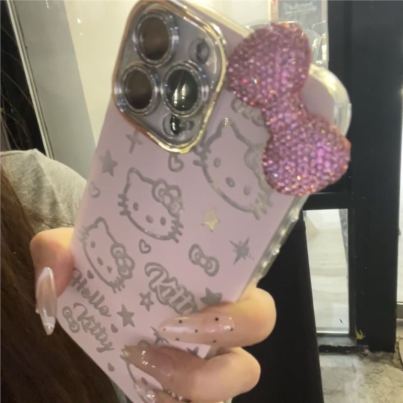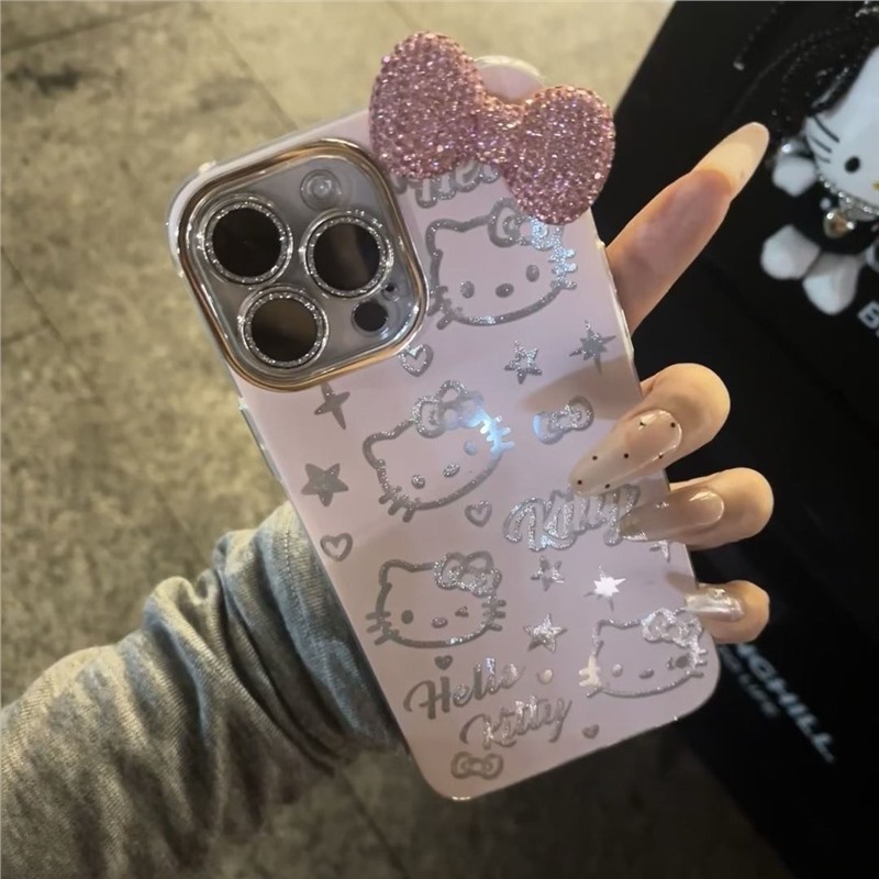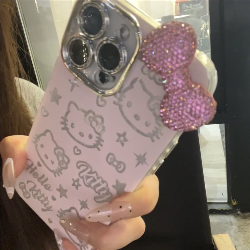 镜头膜粉底英文蝴蝶结kt猫头+立体粉钻闪钻蝴蝶结