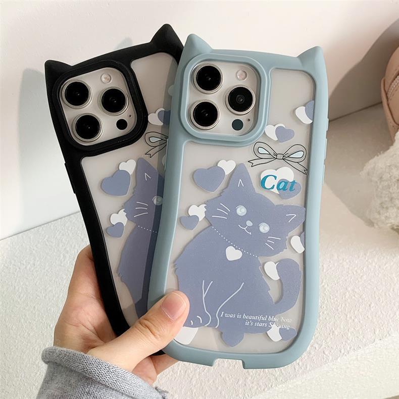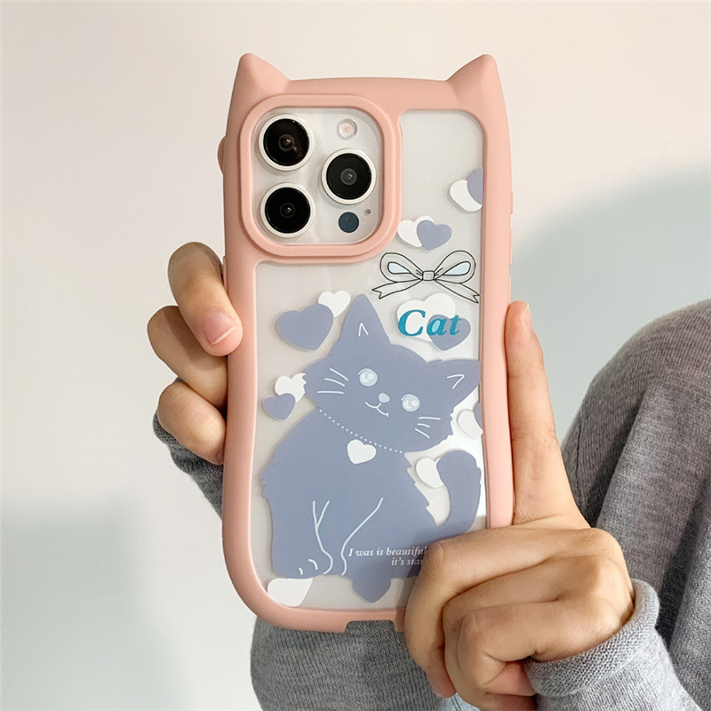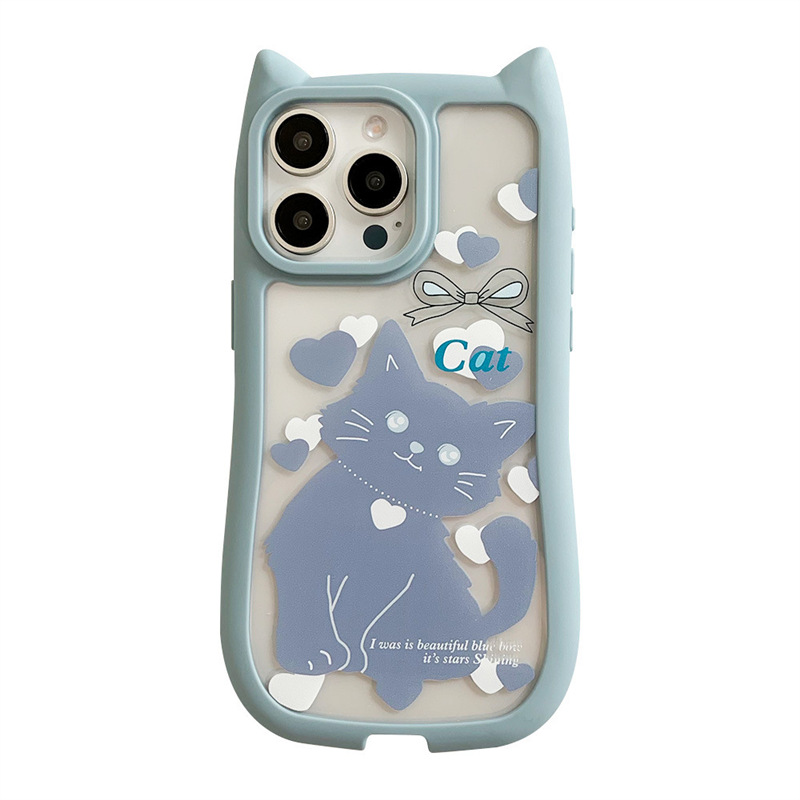 爱心猫咪15promax壳iphone13苹果11女款14plus大孔12蓝猫耳朵