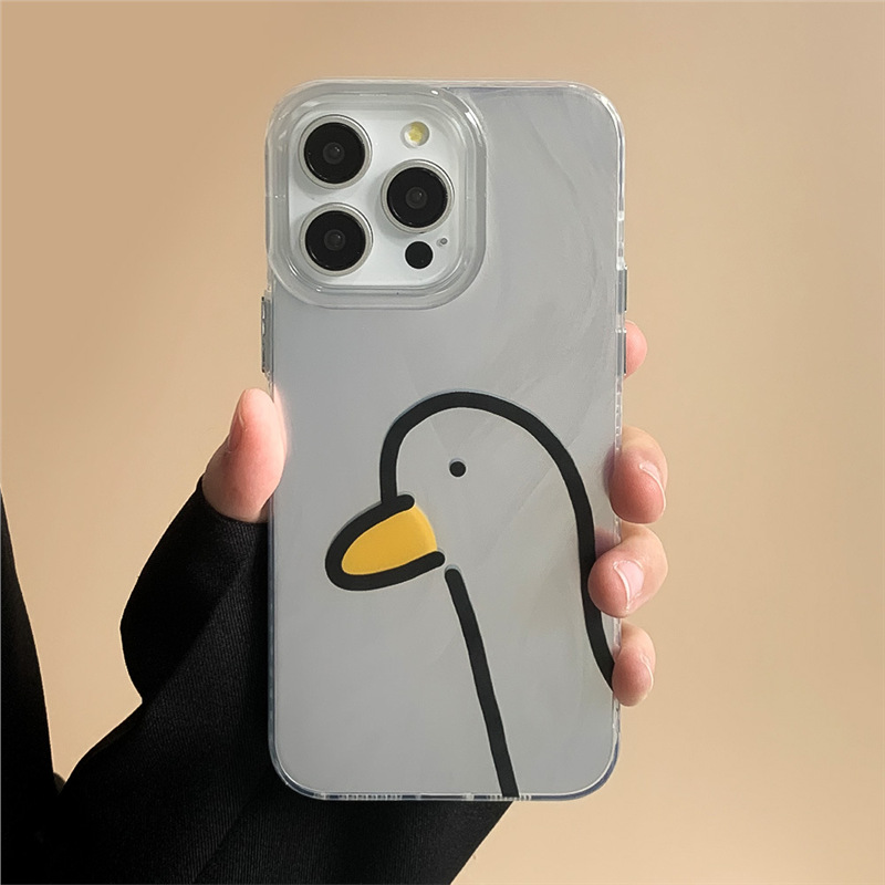 可爱呆萌鸭子iPhone13壳14大孔15pro苹果保护套xs情侣款7plus