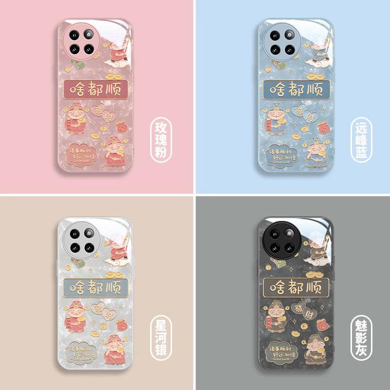 适用小米Civi4Pro手机壳XIaomi金属漆玻璃Civi3高级感CIvi2财神啥都顺CIvi防摔保护套MIUI全包新女款卡通硬壳