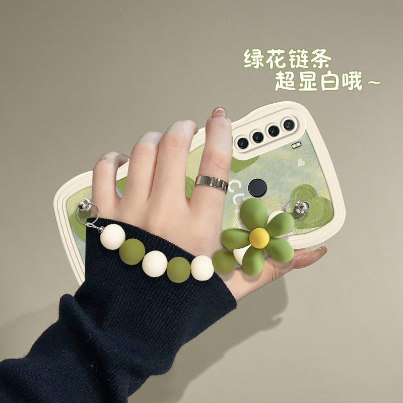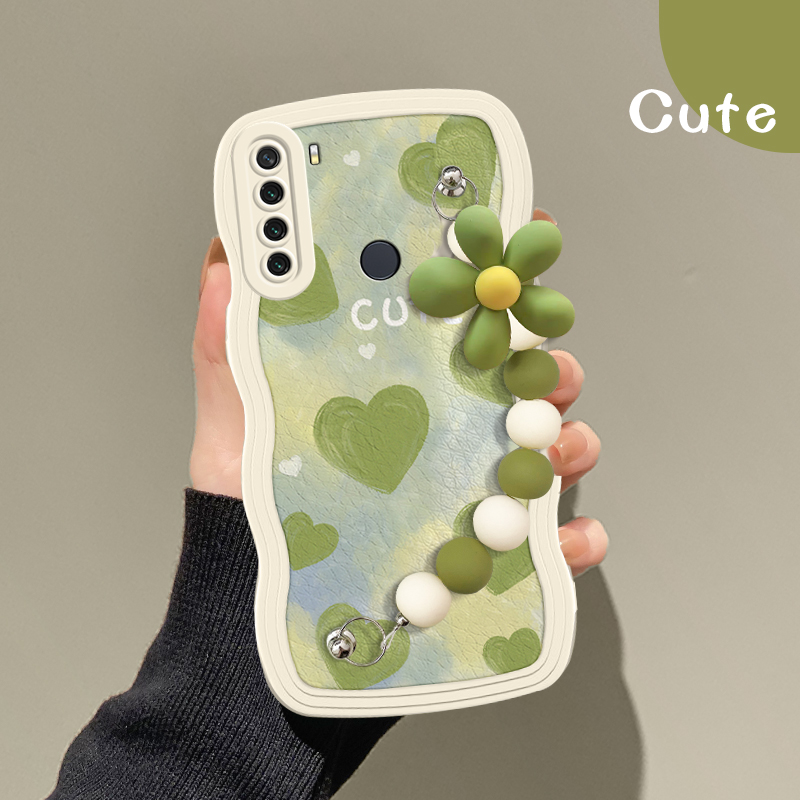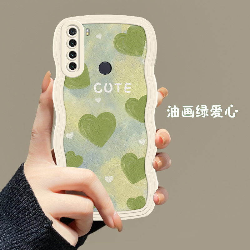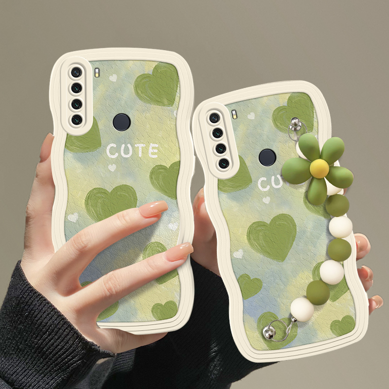 适用于小米红米Note8新款手机壳小清新绿色爱心挂链Note8Pro创意大波浪硅胶保护套全包防摔软壳