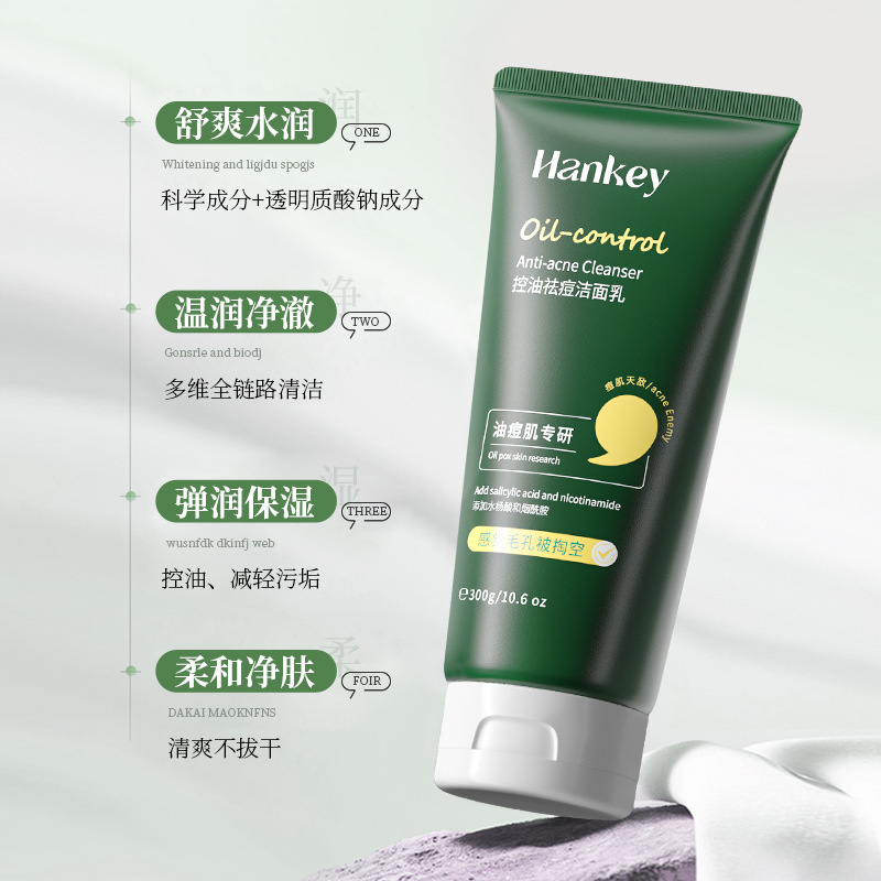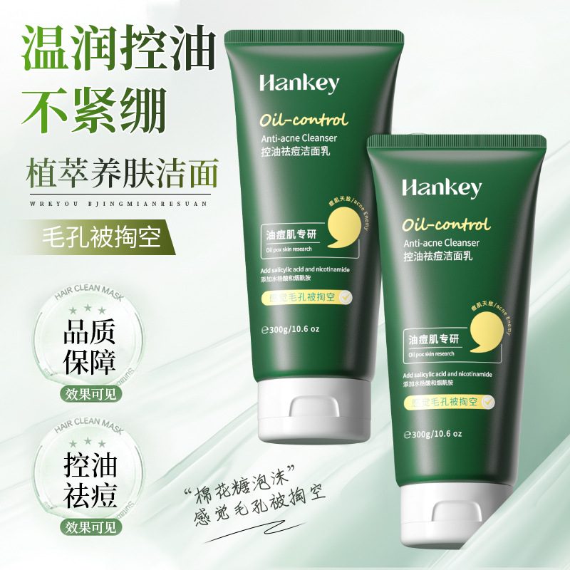 韩纪控油祛痘洁面乳300g清洁痘痘肌水杨酸洗面奶洗卸二合一大支装