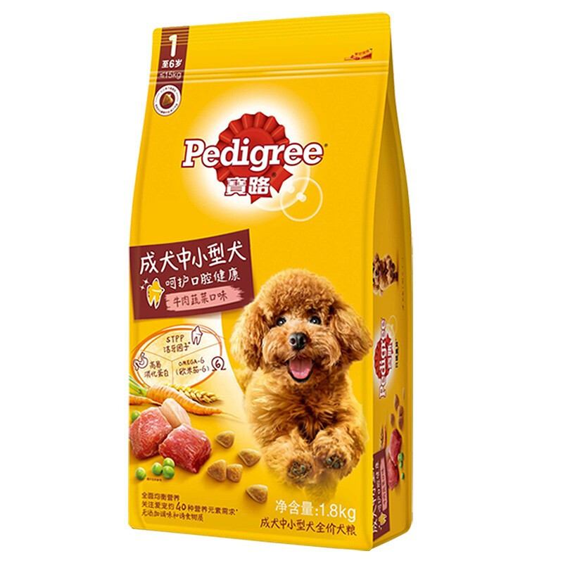 宝/路中小型犬路成犬狗粮1.8kg 牛肉鸡肉味小型犬狗粮