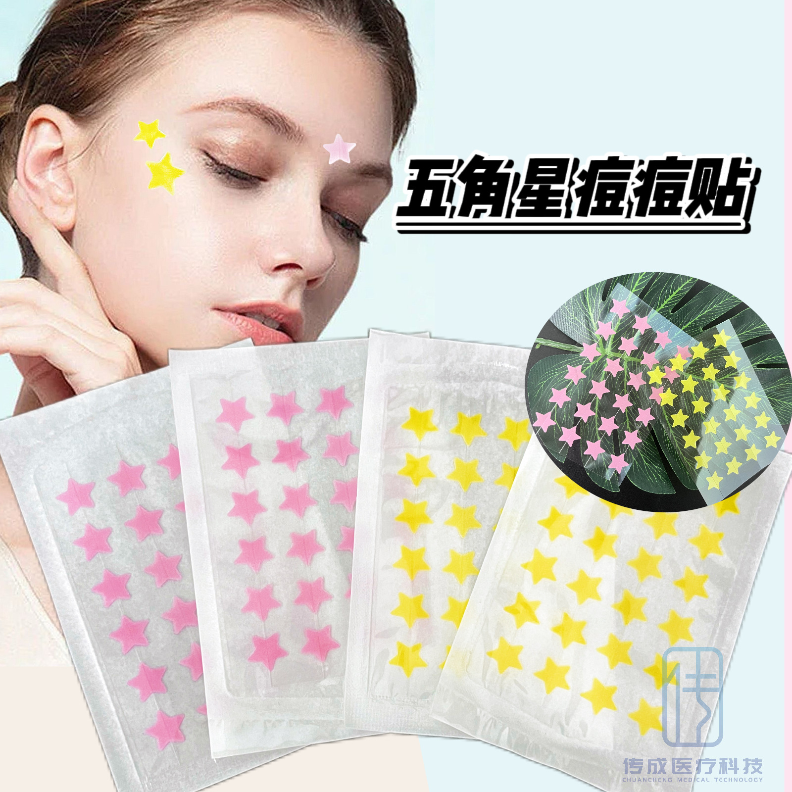 跨境厂家24粒彩色水胶体痘痘贴星星款pu便携式独立包装遮痘贴现货
