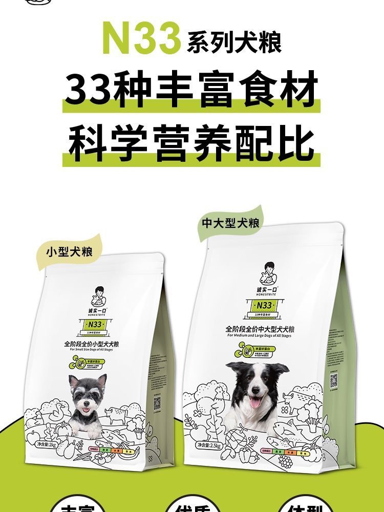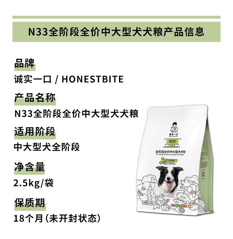 诚实一口N33狗粮全价天然无谷全期小中大型成幼犬通用粮2kg/2.5kg