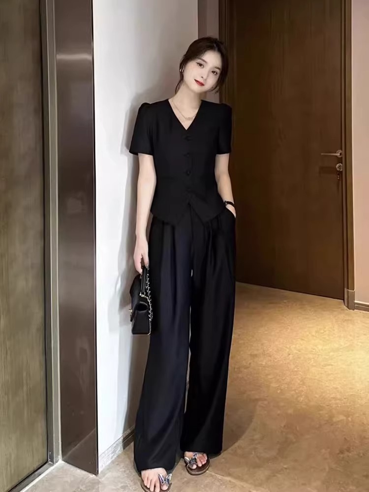 夏装搭配一整套显瘦减龄时髦干练气质女装高级感职业两件套装裤女