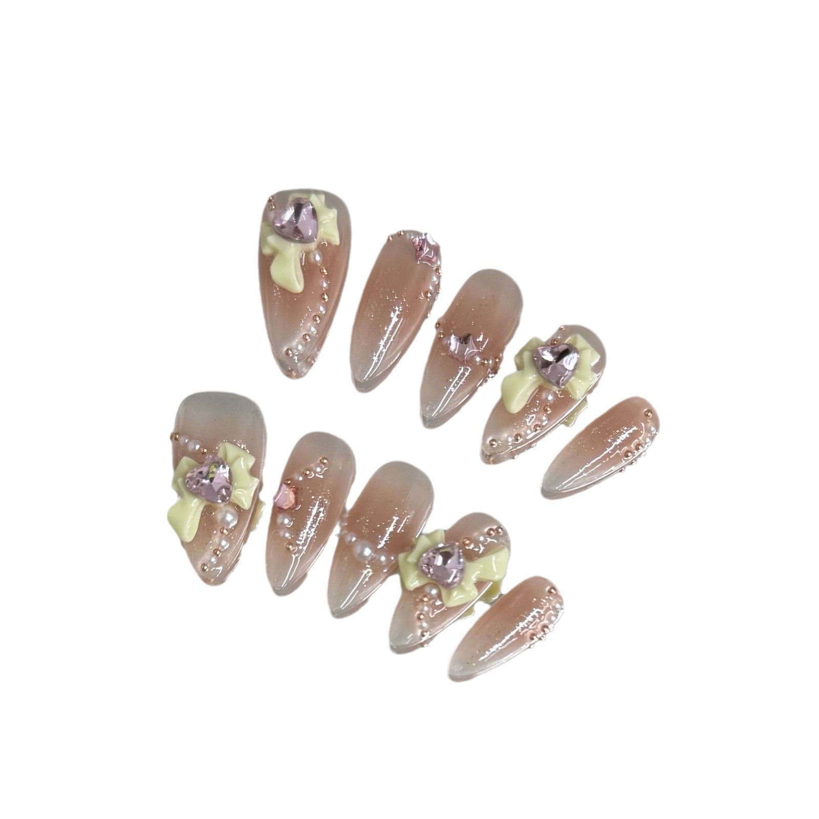 穿戴甲天使之翼可爱甜美在逃公主立体蝴蝶结手工穿戴甲成品美甲贴