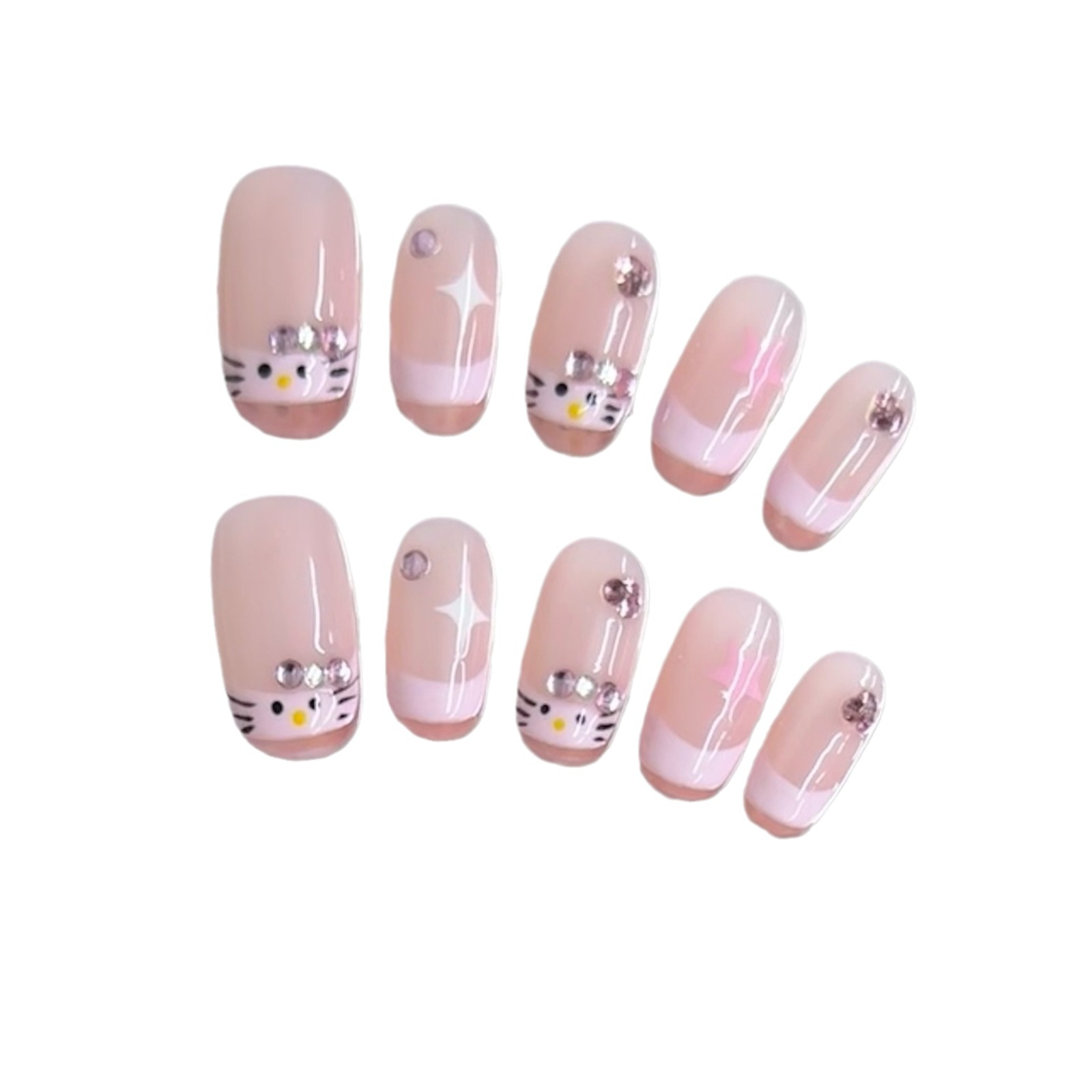手工穿戴甲甜美可爱法式kitty小红书同款ins镶钻可拆卸穿戴美甲贴