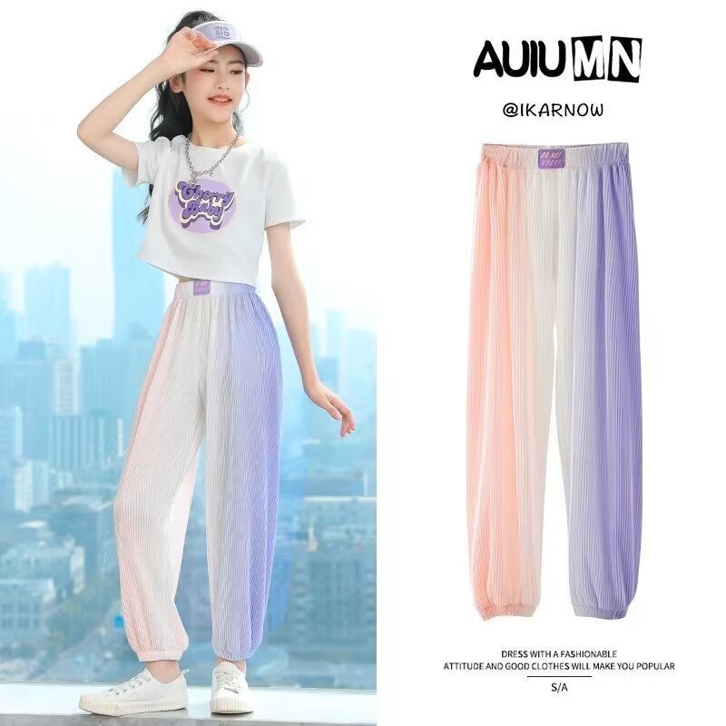女童裤子夏季儿童薄款冰丝长裤大童夏装运动裤女孩防蚊裤套装小孩
