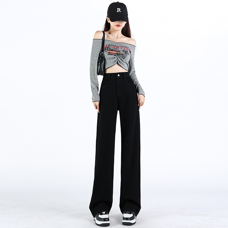 铭海欧美风阔腿裤牛仔裤女秋季高个子黑色高腰显瘦拖地阔腿裤