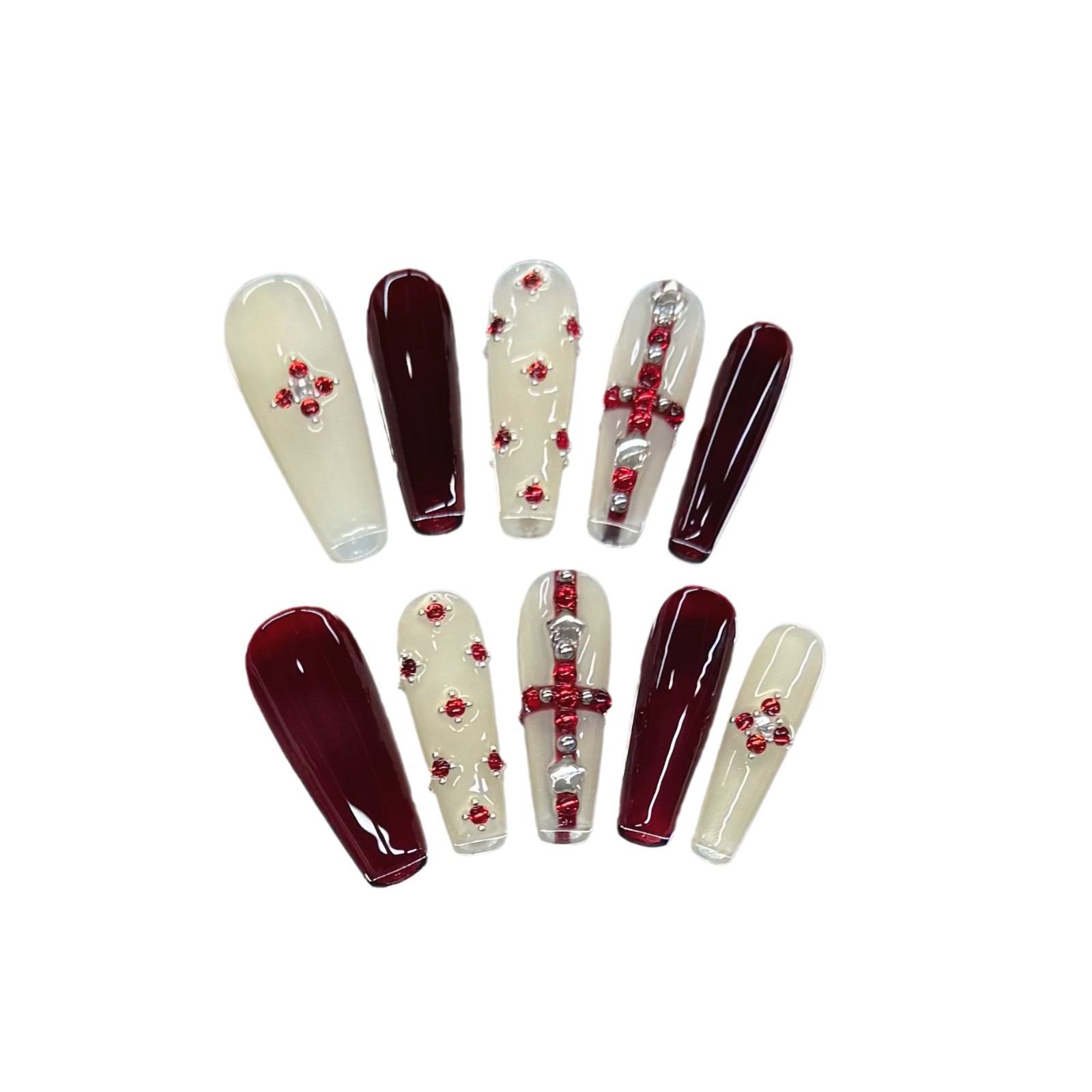 手工穿戴甲纯欲高级感甜酷克罗心贴钻安卡拉红新年氛围感穿戴美甲