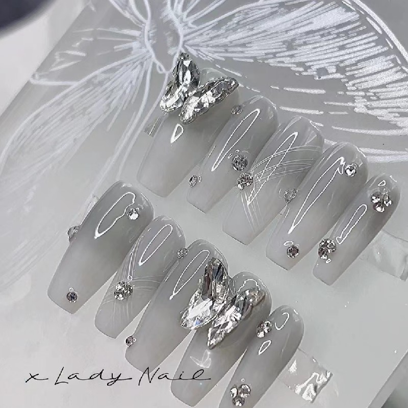 小清新蝴蝶穿戴甲女纯手工光疗假指甲高级水钻穿戴美甲厂家批发