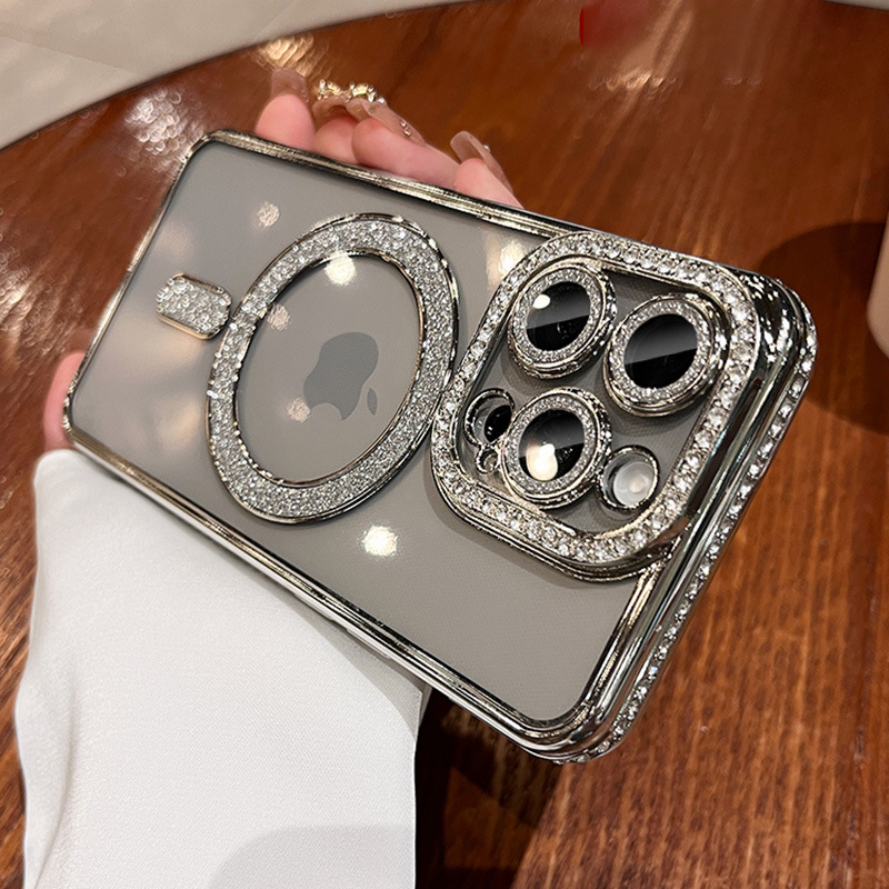 无线充电适用苹果15ProMax手机壳新款水钻边框iphone13pro透明